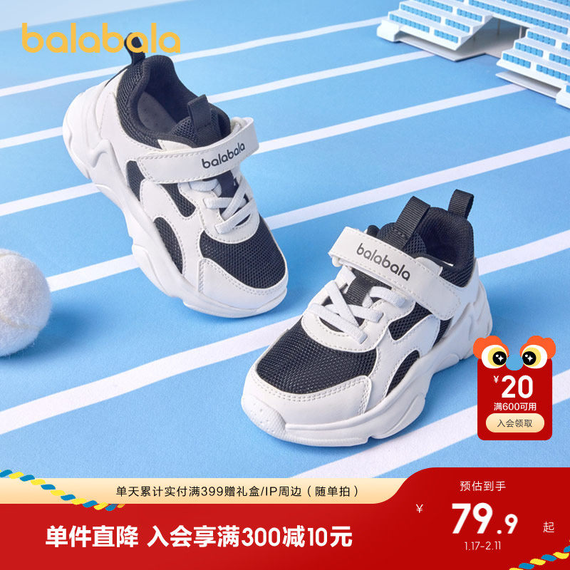 巴拉巴拉童鞋运动鞋透气鞋子舒适春秋小白鞋网鞋潮透气防滑老爹鞋