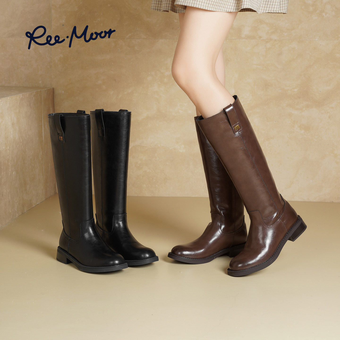 REEMOOR睿慕2025冬季新款复古骑士靴粗跟长筒靴时装靴高筒靴女靴