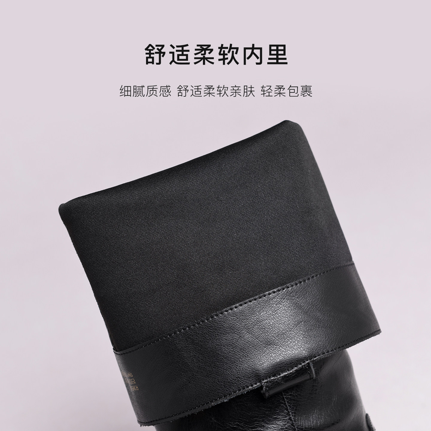 万茜/美洋同款接吻猫[游牧诗人]长筒靴真皮黑色高靴皮带扣骑士靴