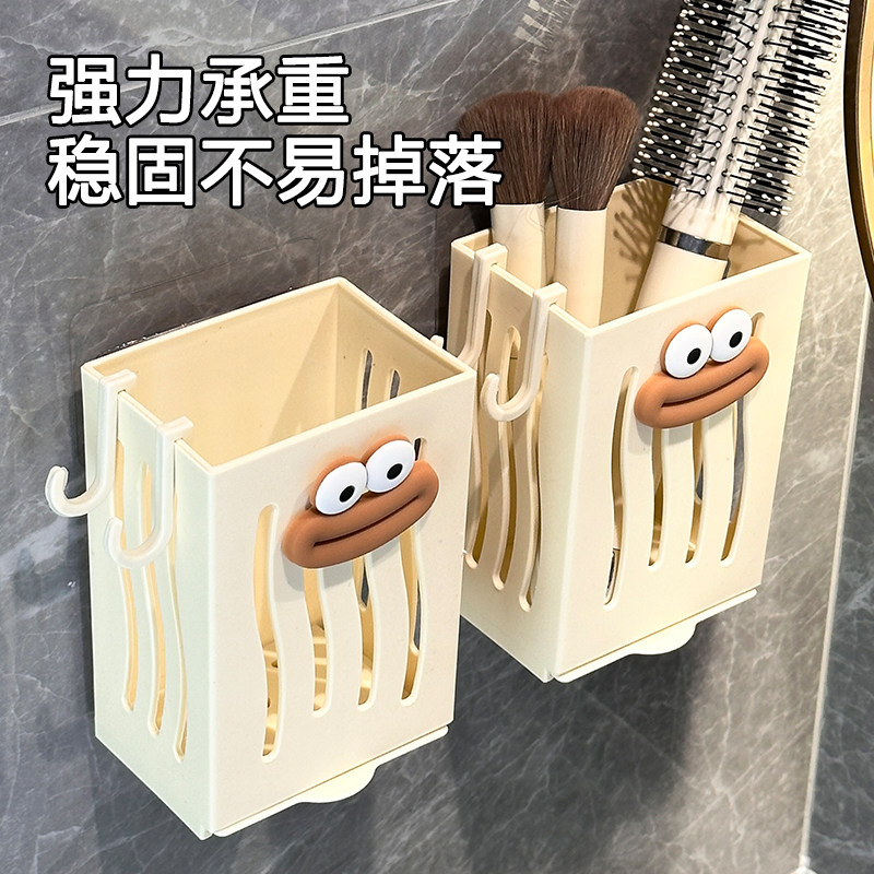 卫生间置物架免打孔浴室架子壁挂墙上梳子收纳盒洗漱台牙膏牙刷筒