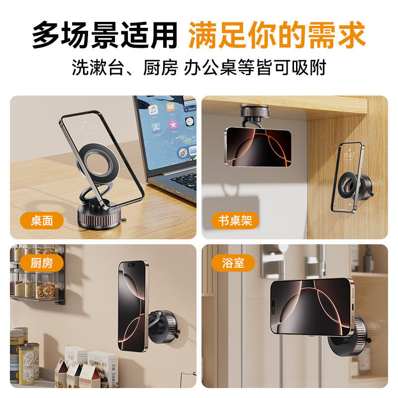 2026新款真空吸附磁吸手机支架吸盘自拍摄支架旋转桌面墙壁上浴室车载专用直播设备便携拍视频汽车载手机导航