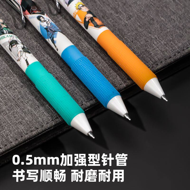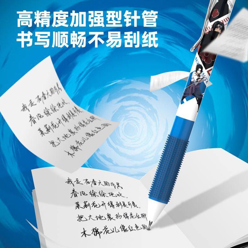 得力火影忍者ST笔头高颜值中性笔中小学生书写大容量刷题笔黑色速干按动笔0.5mm