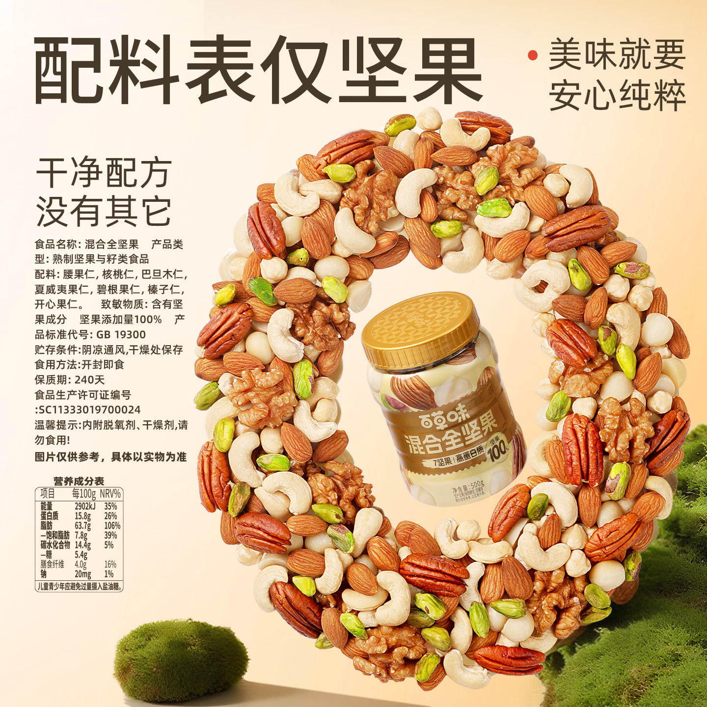 直播专享-每日坚果7种纯坚果500g罐装混合果仁坚果健康零食干果