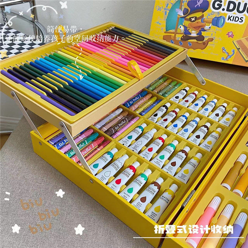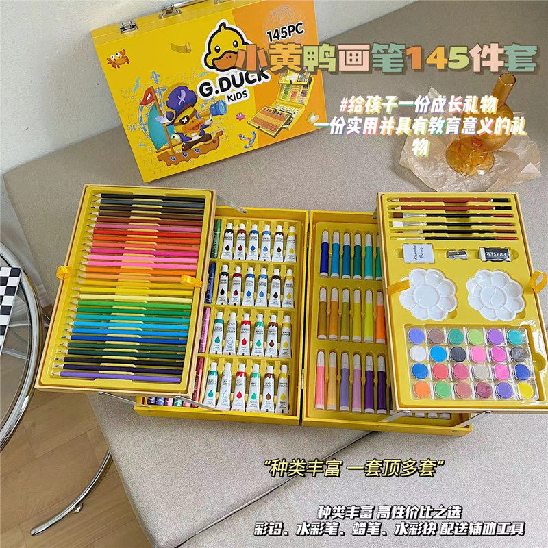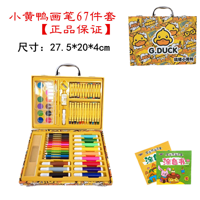 G.DUCk小黄鸭67件套儿童水彩笔绘画套装可水洗小学生画画工具礼盒