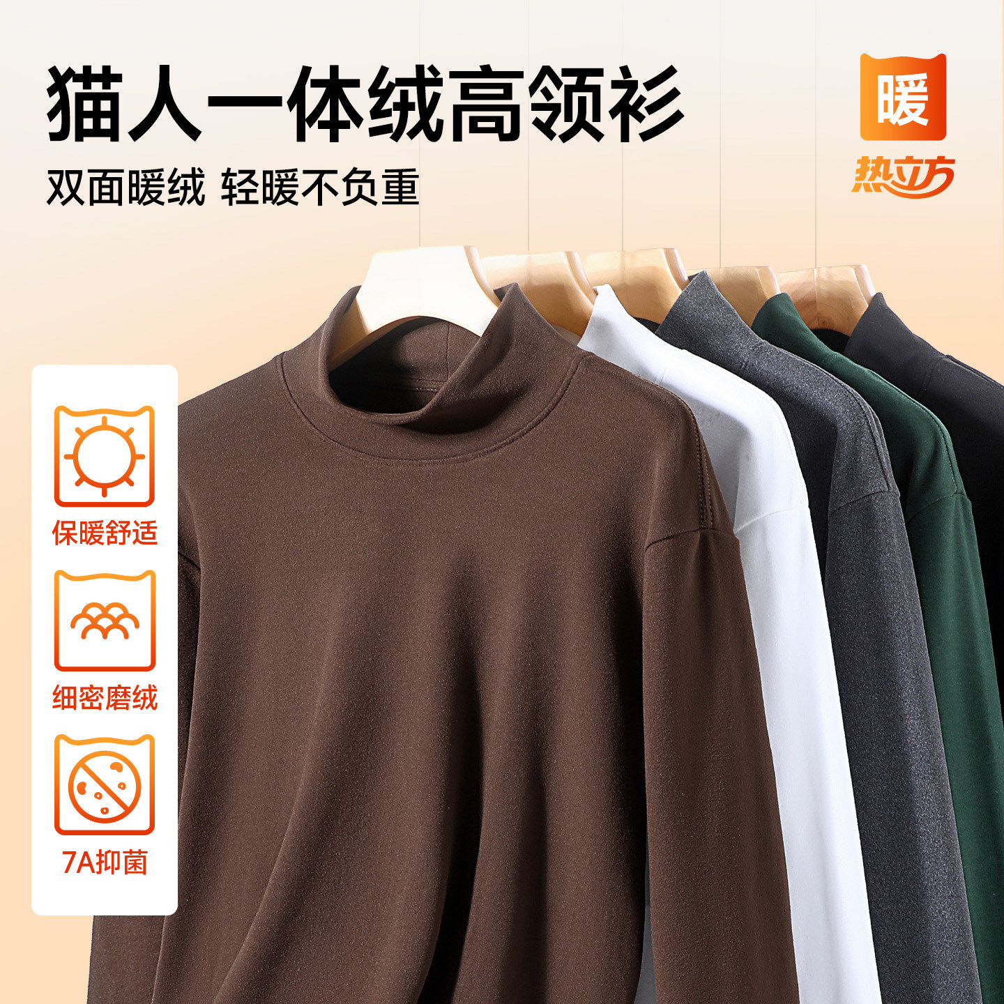猫人高领打底衫男黑色宽松高级感男士长袖t恤冬保暖内搭上衣男款J