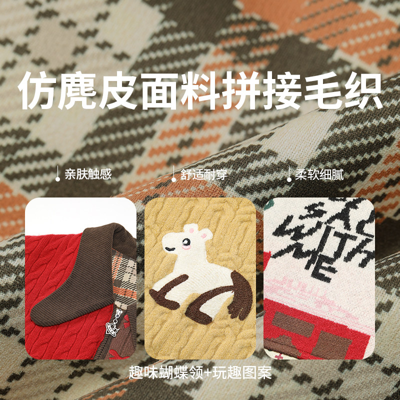 韩系甜美波点针织拼接长袖冬季棉服女宽松短款保暖加厚面包服外套