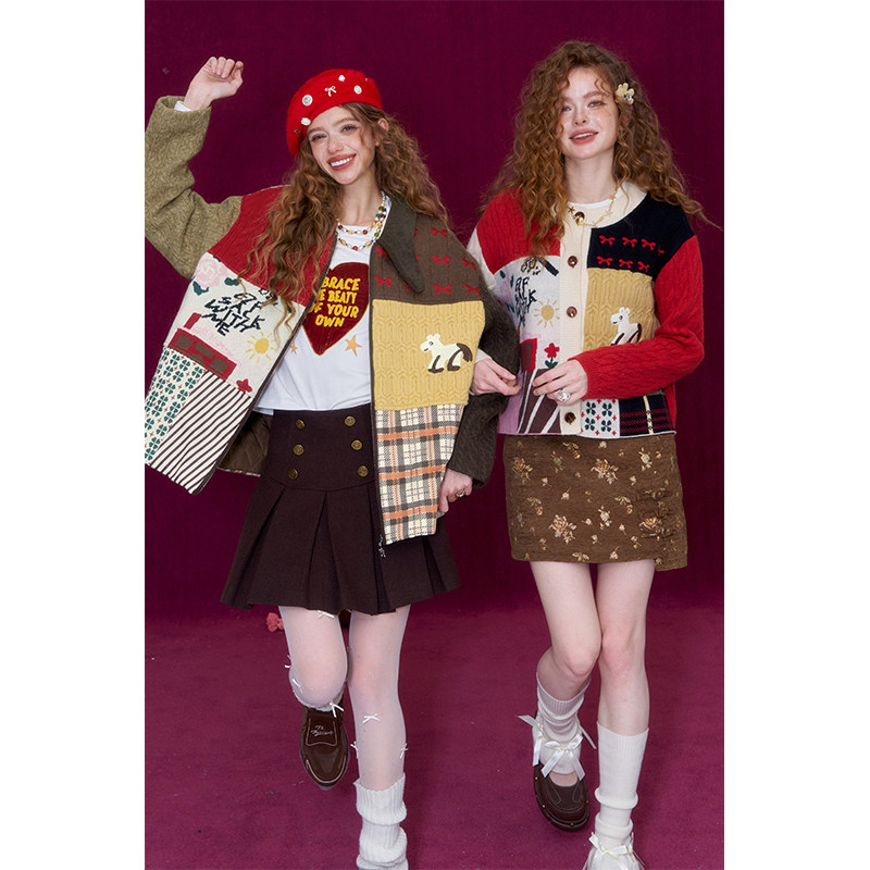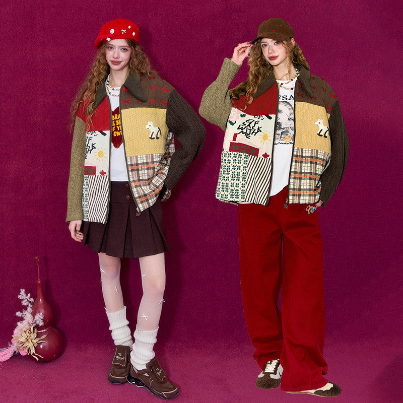妖精的口袋小马提花麂皮拼接棉衣女2026年设计感重工夹棉显瘦外套
