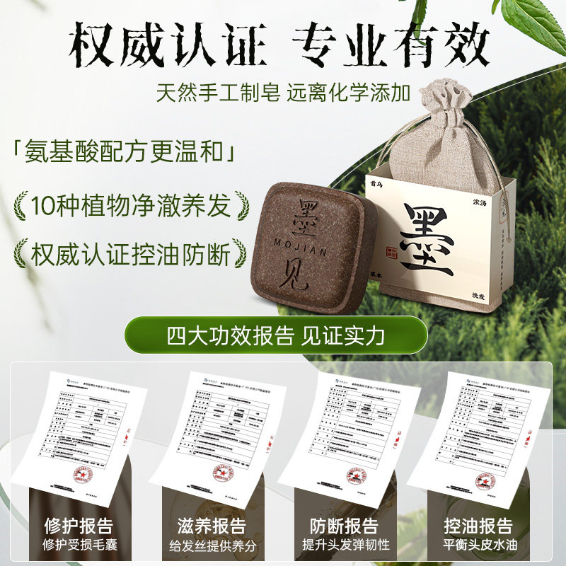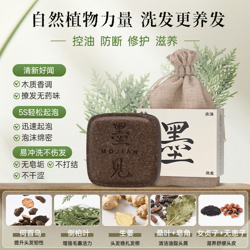 墨见草本手工洗发皂何首乌侧柏叶去屑皂角洗头膏肥皂古法养发植物