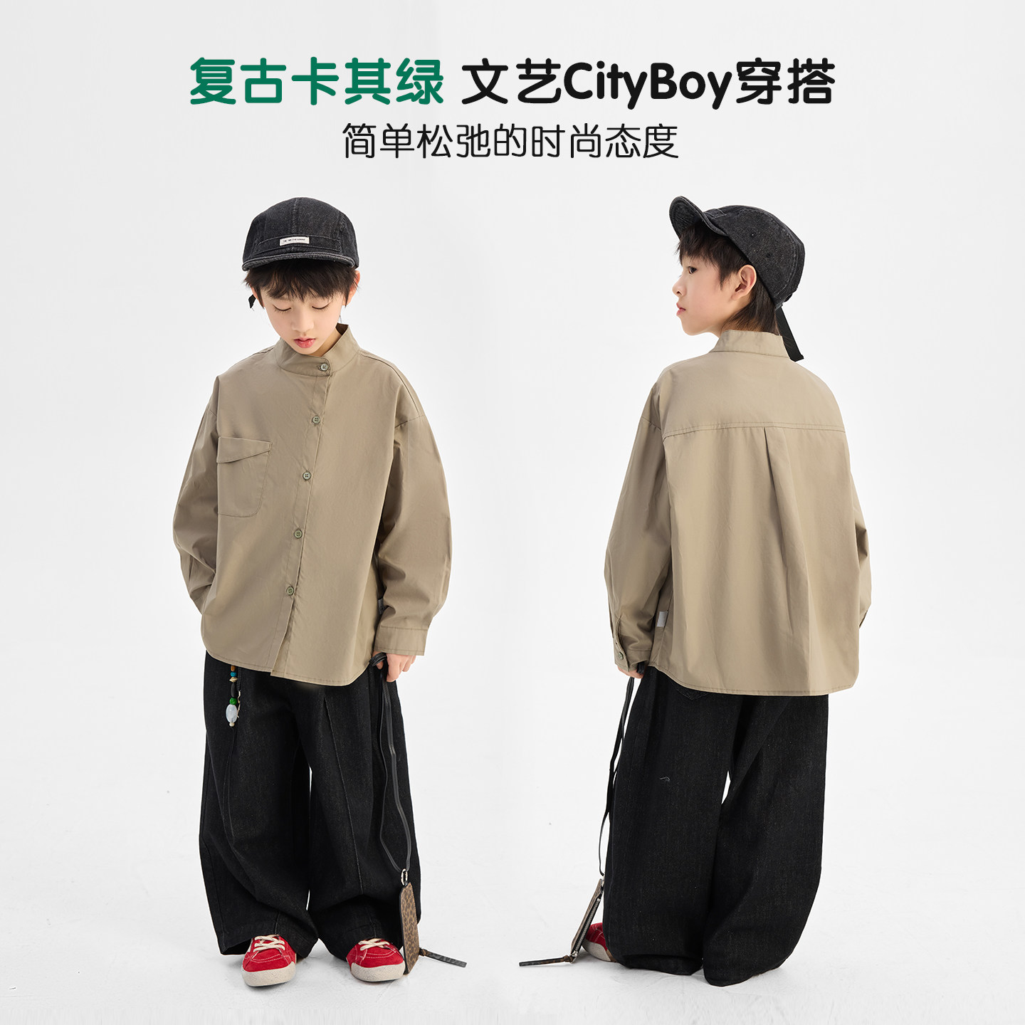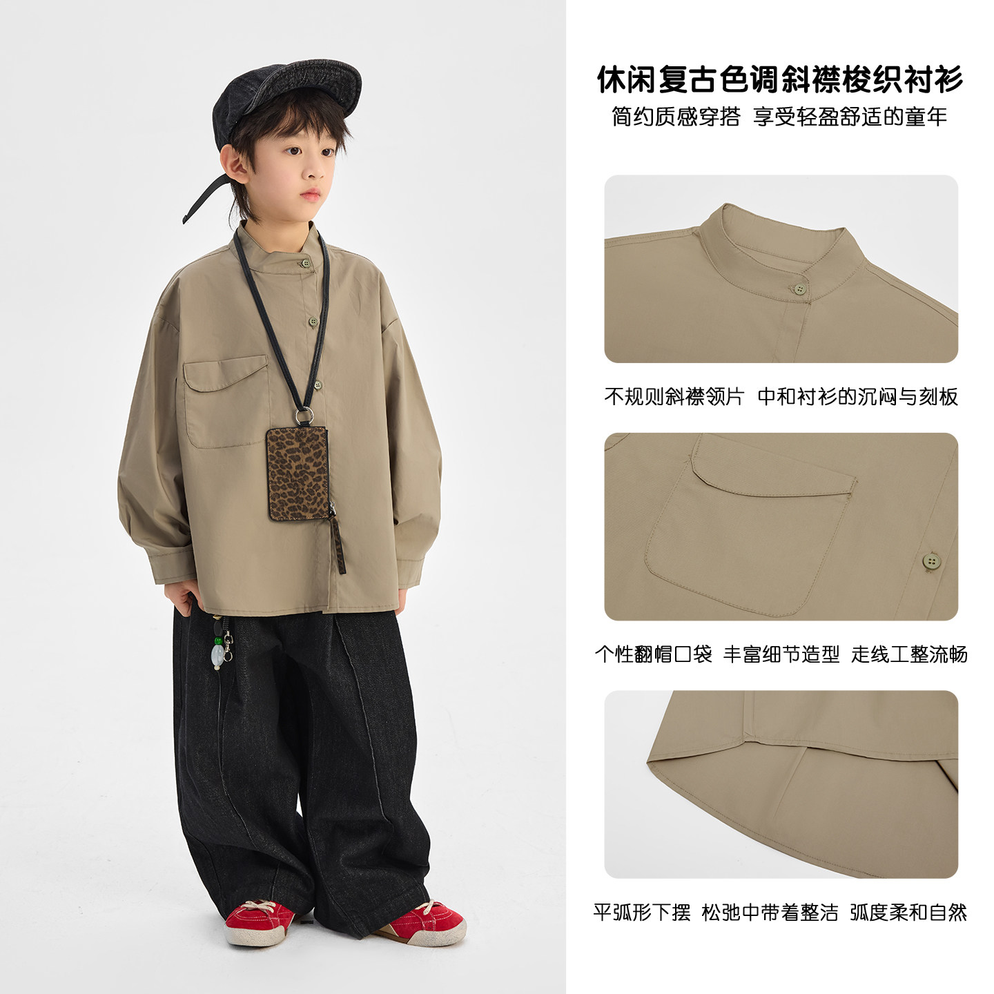 派町童装男童衬衫2026春季薄款儿童衬衣复古斜襟男孩衣服长袖上衣