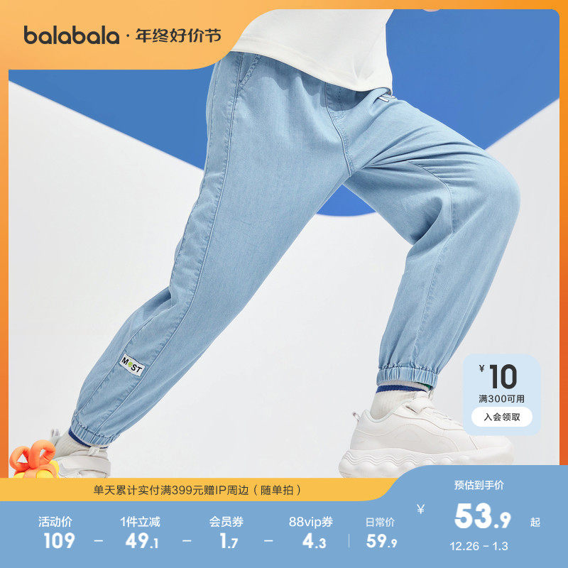 巴拉巴拉裤子男童牛仔裤儿童中大童长裤夏装