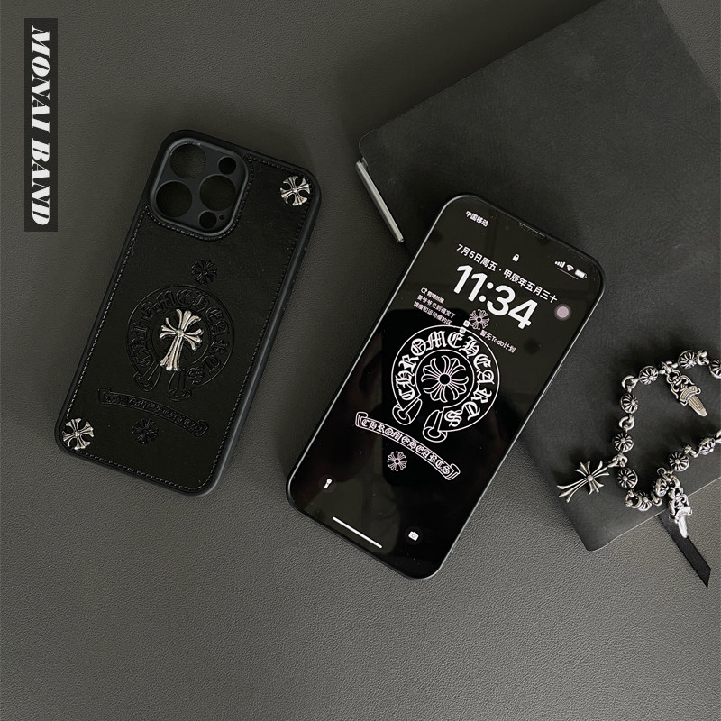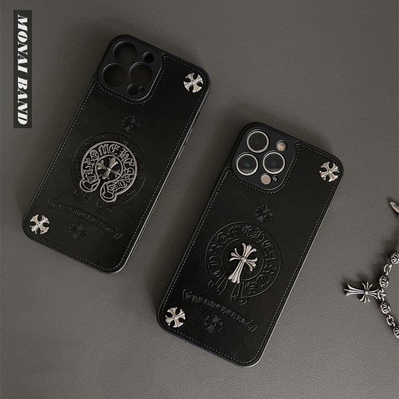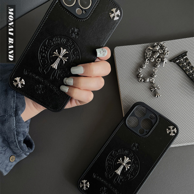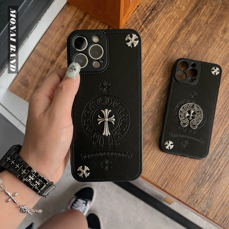 适用于iphone15pro克罗芯情侣手机壳套14MAX时尚女防摔皮质12pro手机壳苹果13pro手机壳金属朋克风手机壳
