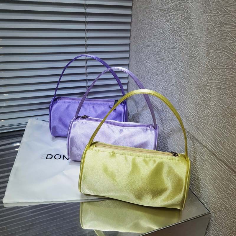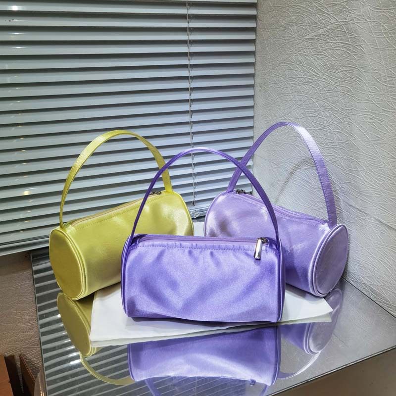 包包女新款小众复古手工缎面圆筒包手提手拎包小包百搭
