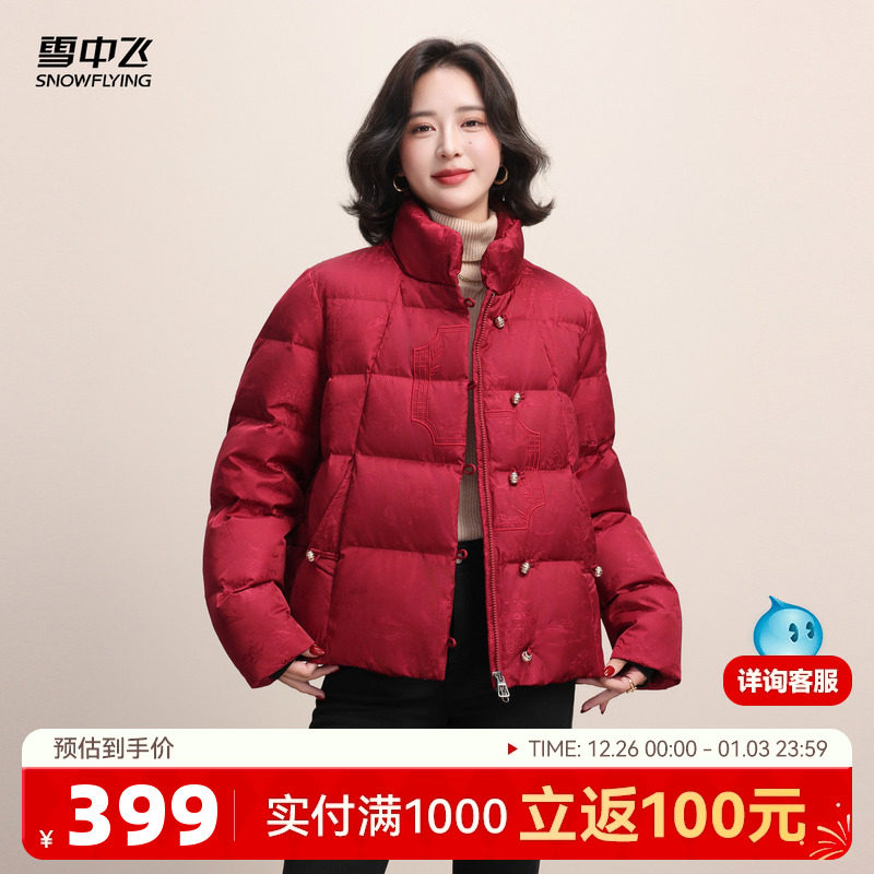 雪中飞2025冬新款女士气质中式妈妈短款羽绒服中年盘扣花纹保暖