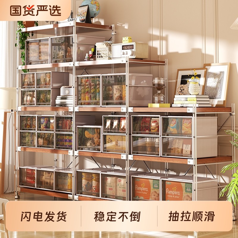日式家用橱柜抽屉式收纳盒可伸缩收纳筐客厅零食杂物储物盒收纳箱