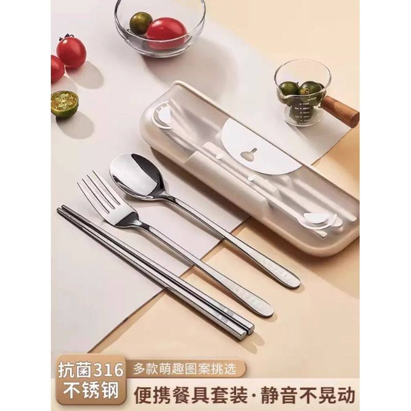 316不锈钢筷子勺子套装一人用便携餐具盒上班族小学生外带收纳盒