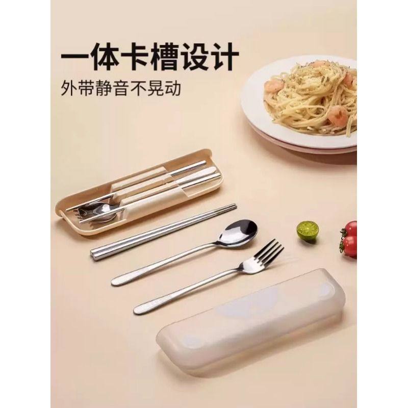 筷子勺子叉子套装一人用便携餐具收纳盒学生上班外带不锈钢三件套