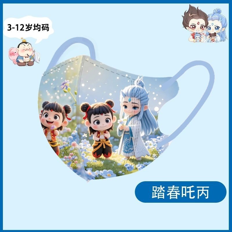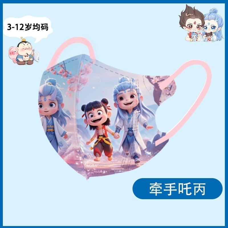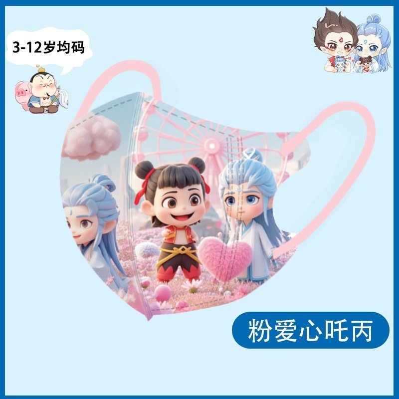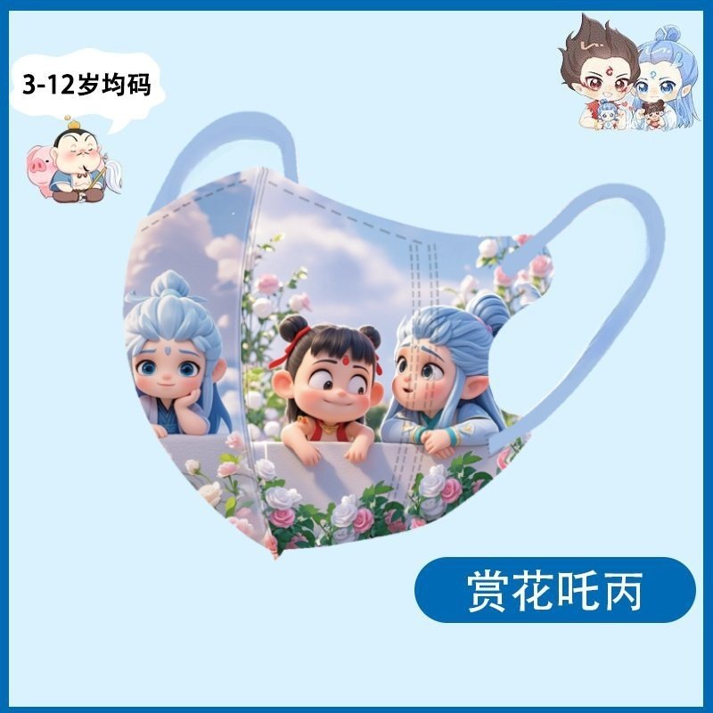 儿童口罩卡通动漫高颜值哪吒3D立体防护口罩3-12岁男女孩防护专用