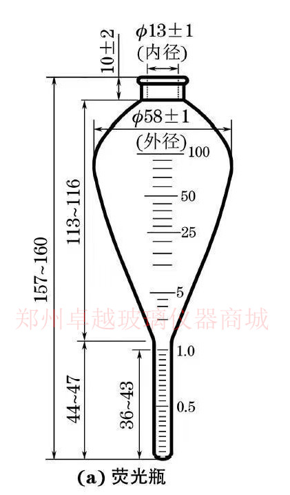 ASTM探伤磁悬液浓度测沉淀瓶梨形磁粉沉淀管 尾管1ml分度0.05ml