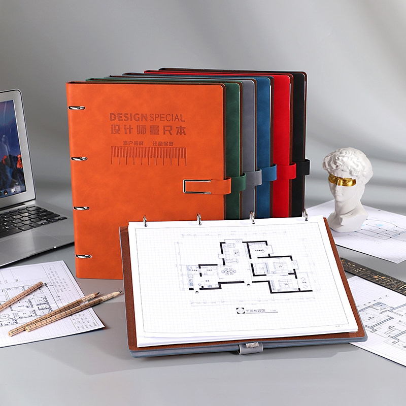 设计师量尺寸专用本量房本A4活页加厚装修室内设计笔记本子硬壳网格全屋定制测量记录本网格手绘线圈本绘图本