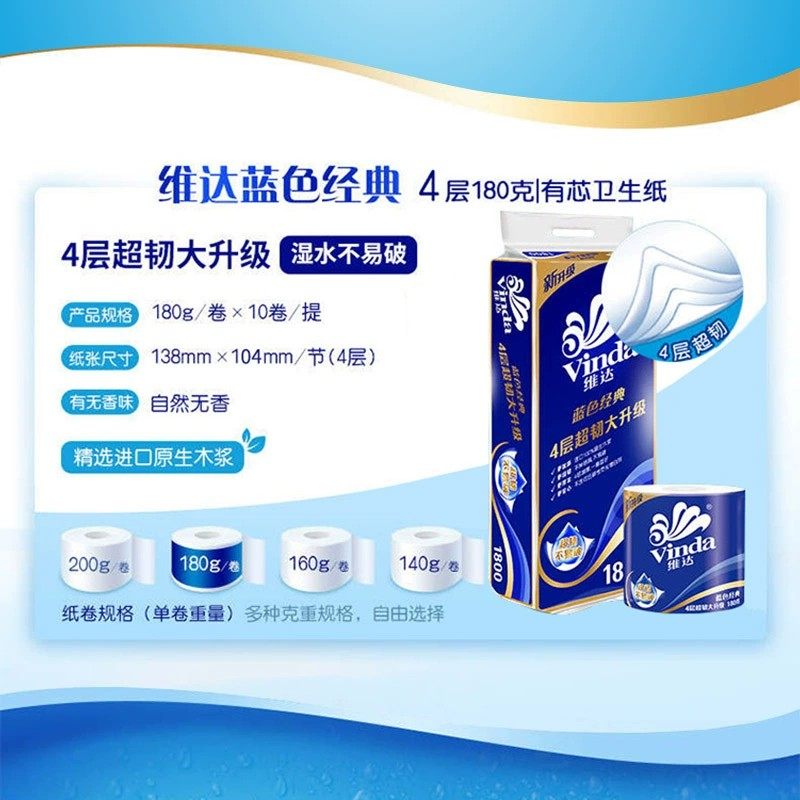 【孙颖莎推荐】维达卷纸蓝色经典有芯4层200g卫生纸巾家用实惠装