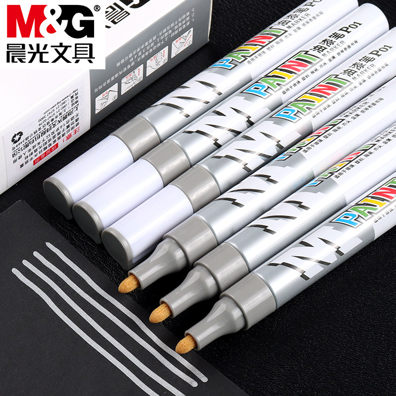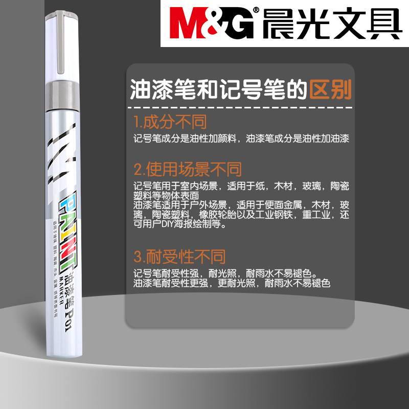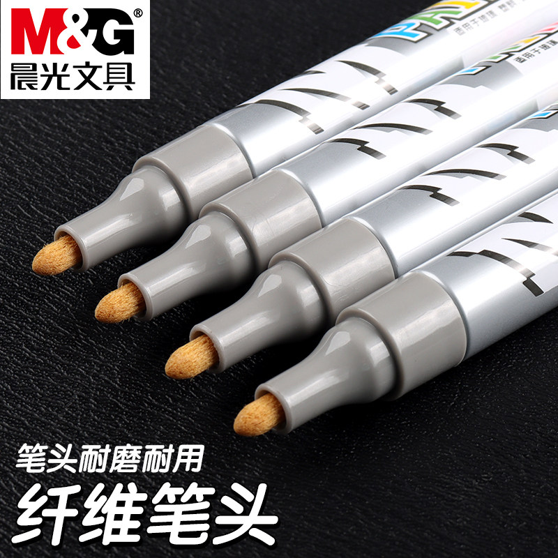 晨光银色油漆笔防水防油不易褪色记号笔标记笔多色工业用补漆笔不易掉色油性轮胎涂鸦笔补色上色设计绘画笔