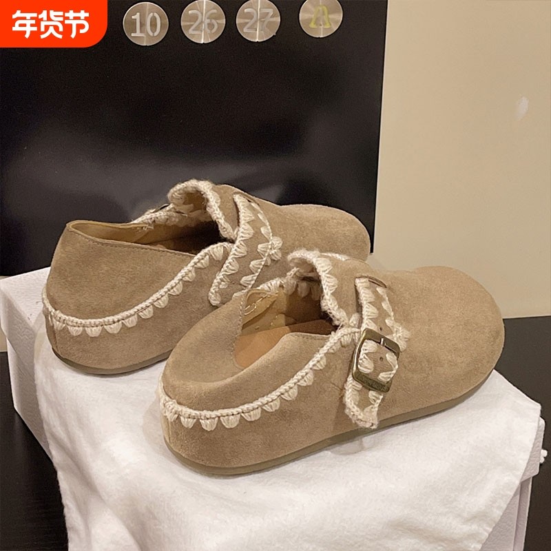 TATAFOCUS~加绒毛毛鞋韩版圆头皮带扣2025冬季新款勃肯鞋女35-28
