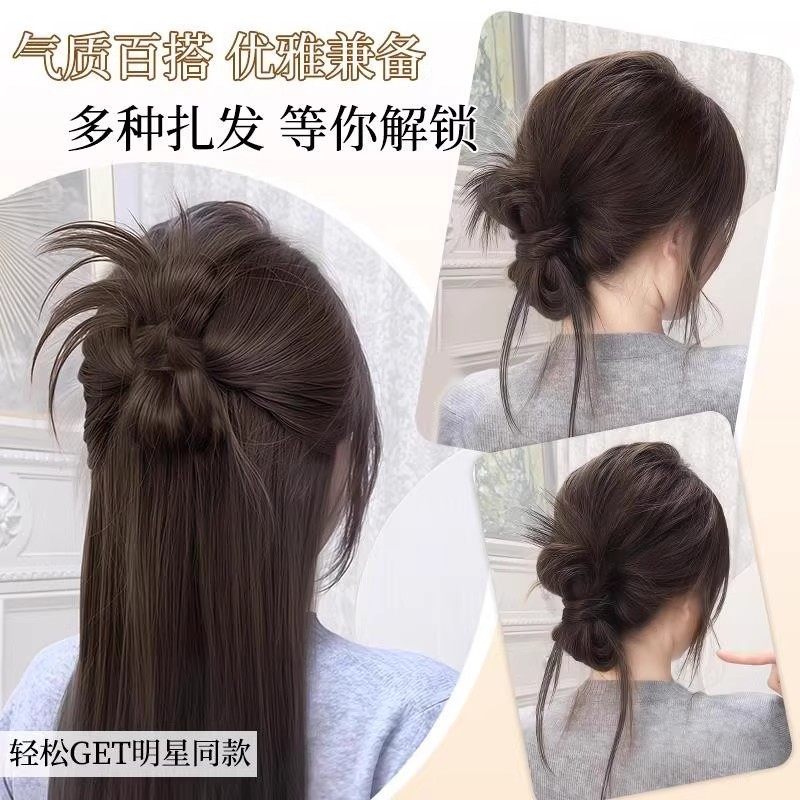 丸子头假发女发抓夹发圈低扎鸡毛花苞头盘发神器发包发量少一体式