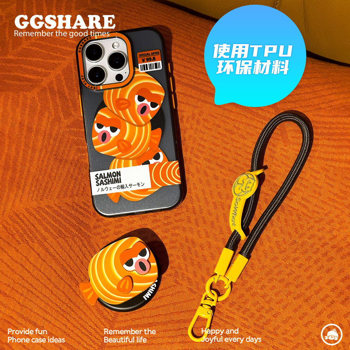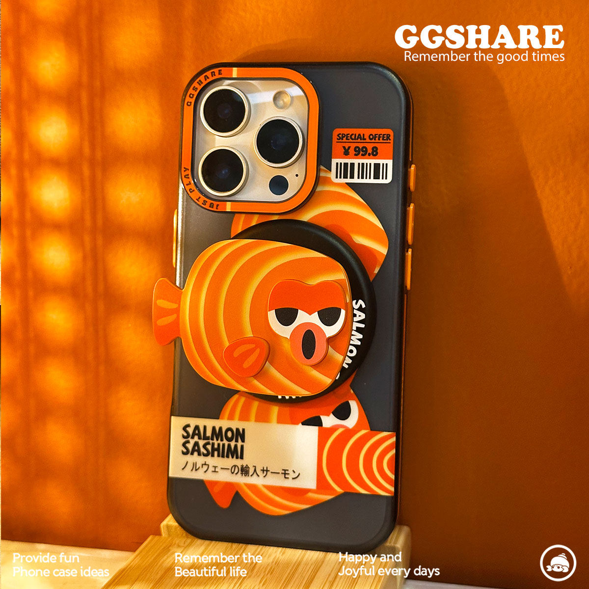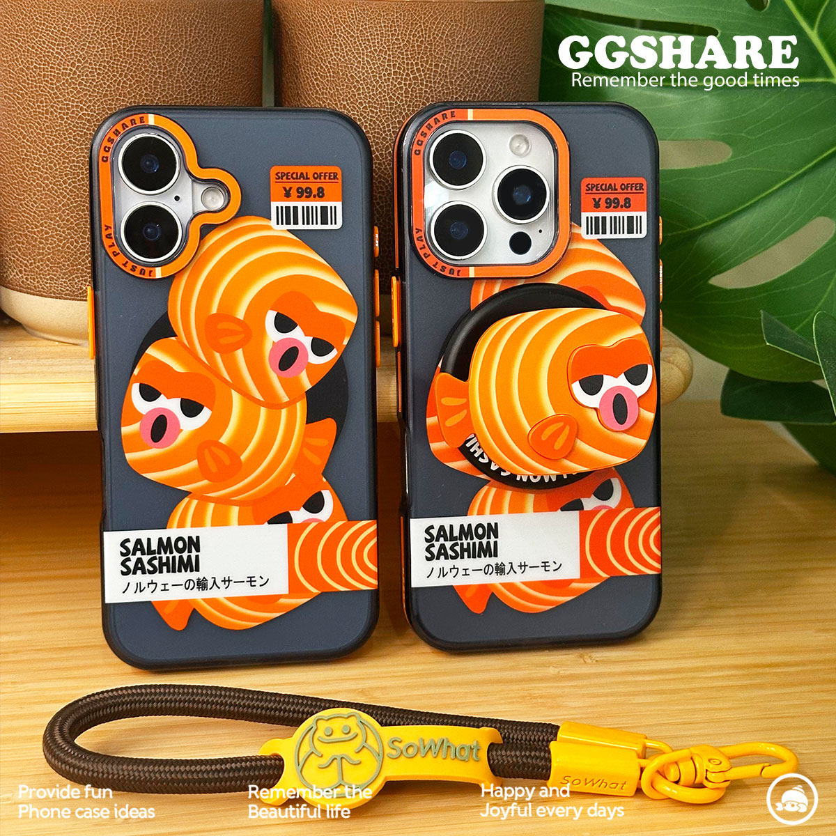 寄居蟹三文鱼原创苹果手机壳适用iphone16 promax新款15pro磁吸带支架卡通小众不撞款可爱个性防摔设计带挂绳