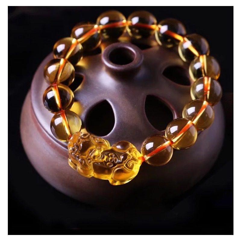 黄水晶紫水晶手链招财貔貅男女手串情侣款圆珠饰品时尚本命年礼物