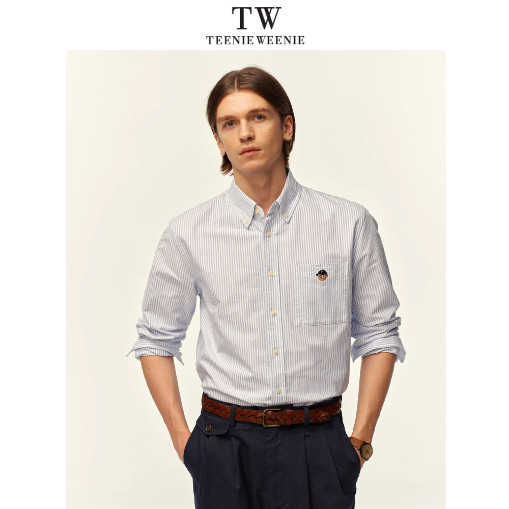 TeenieWeenie小熊情侣条纹衬衫男款美式长袖休闲上衣纯棉新款外套