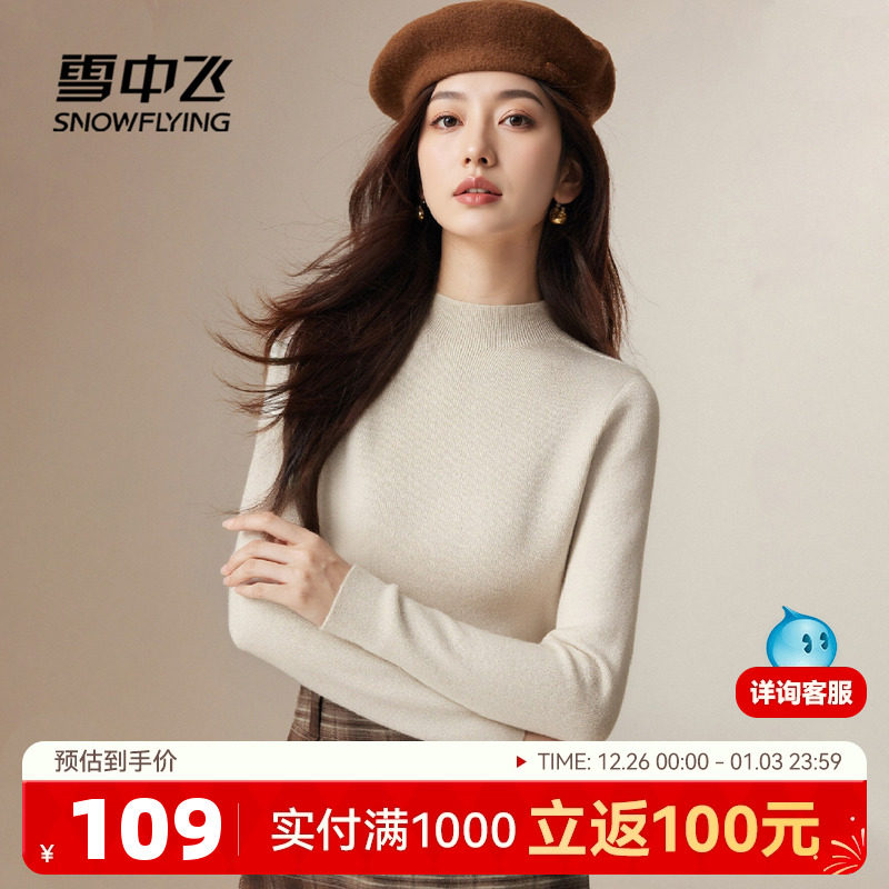 雪中飞半高领针织衫女秋冬季2026新款毛衫小个子含羊毛打底毛衣PC