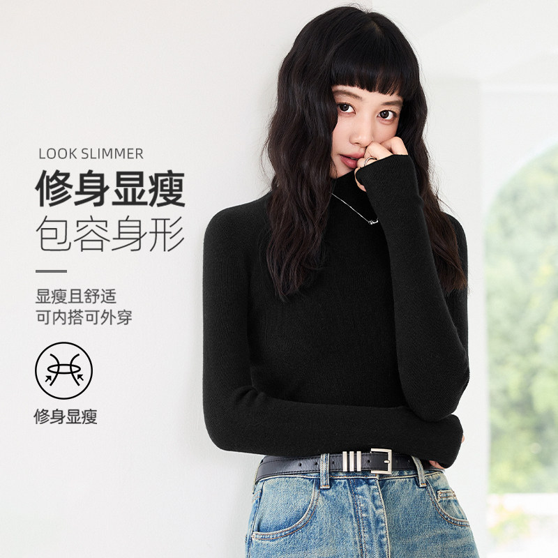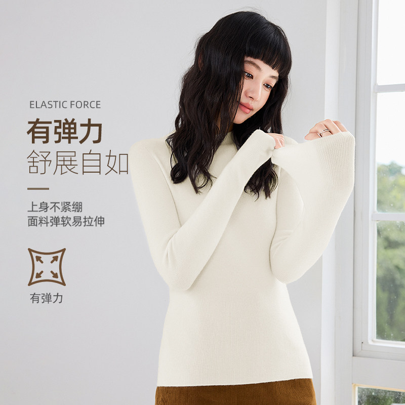 一线成衣无缝女半高领套头打底衫秋冬内搭毛衣修身长袖羊毛针织衫