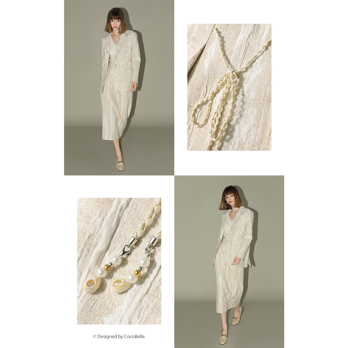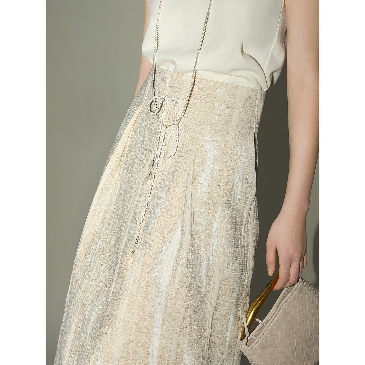 【3件5折】COCOBELLA肌理浮雕捏褶花苞裙棉麻直筒半身裙HS0017