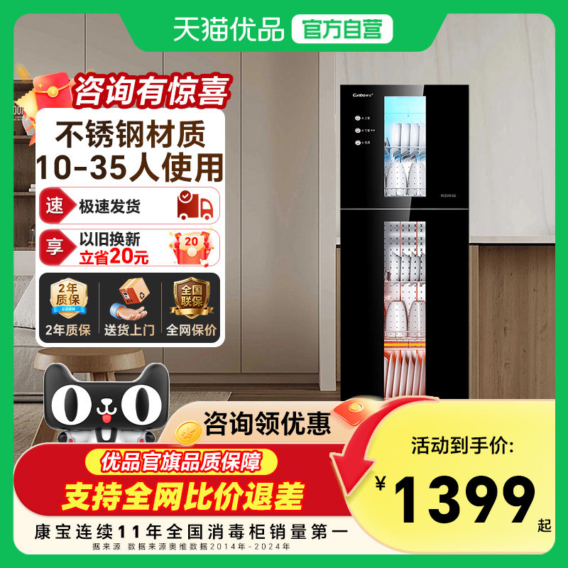 康宝210L家用商用餐饮饭店立式餐具酒杯高温二星不锈钢碗筷消毒柜