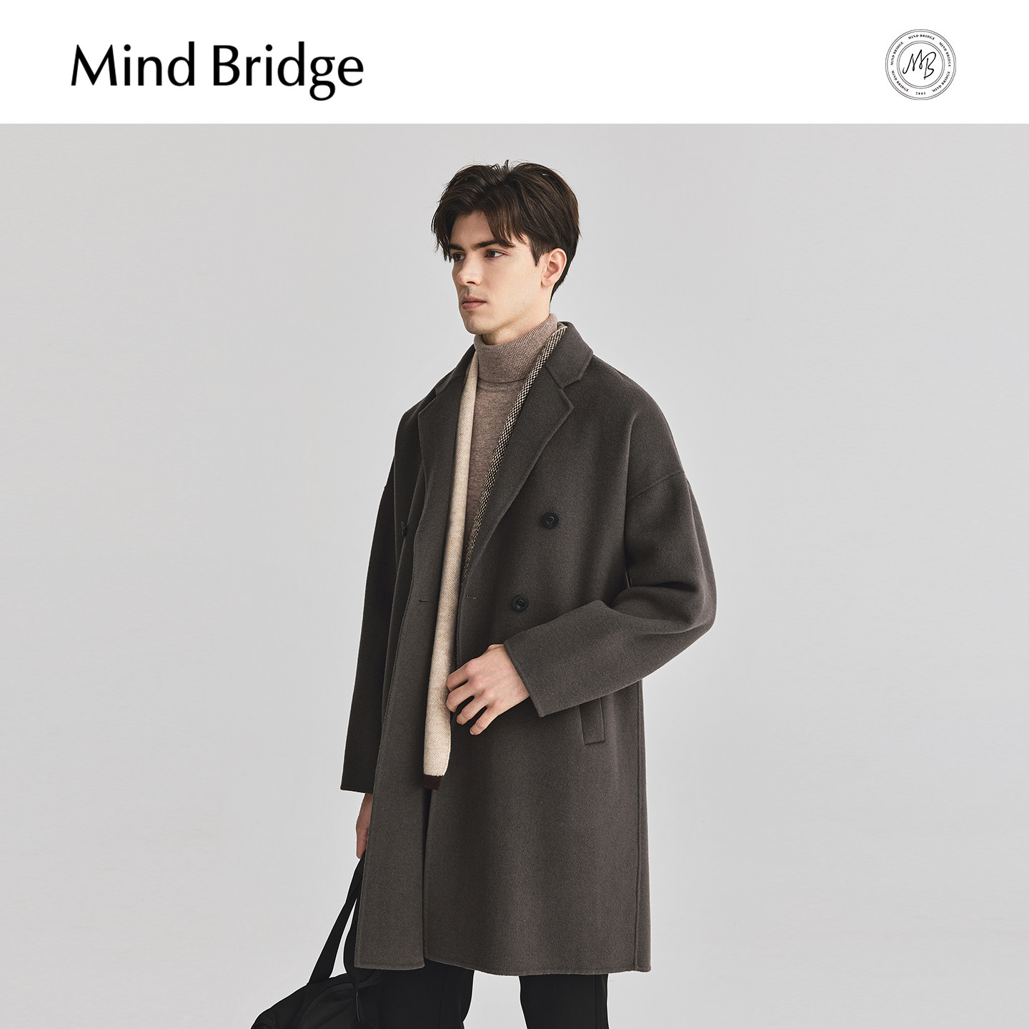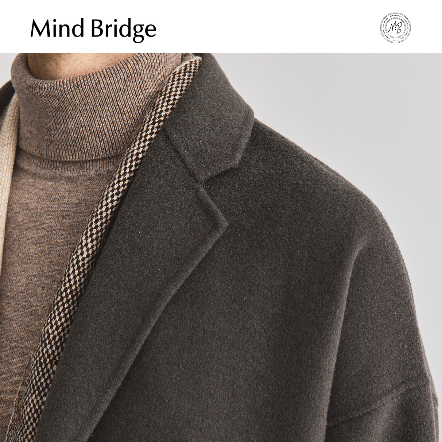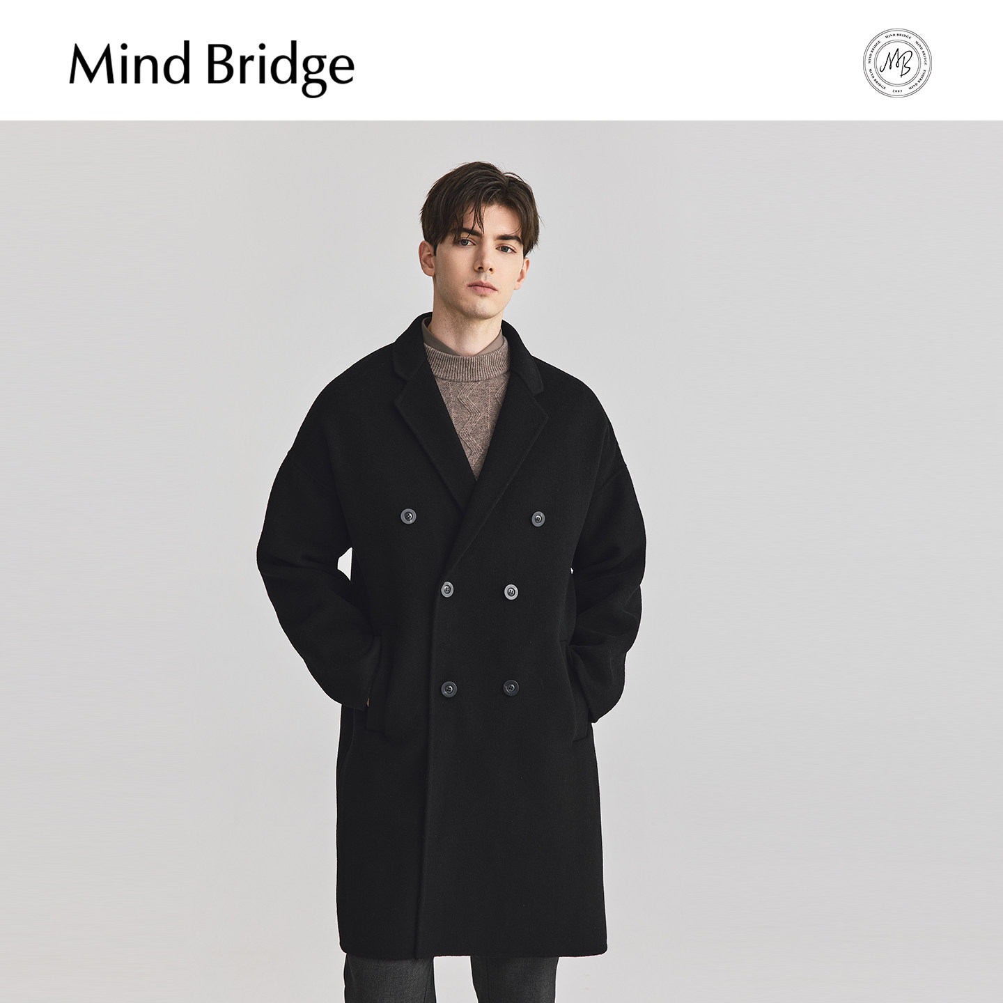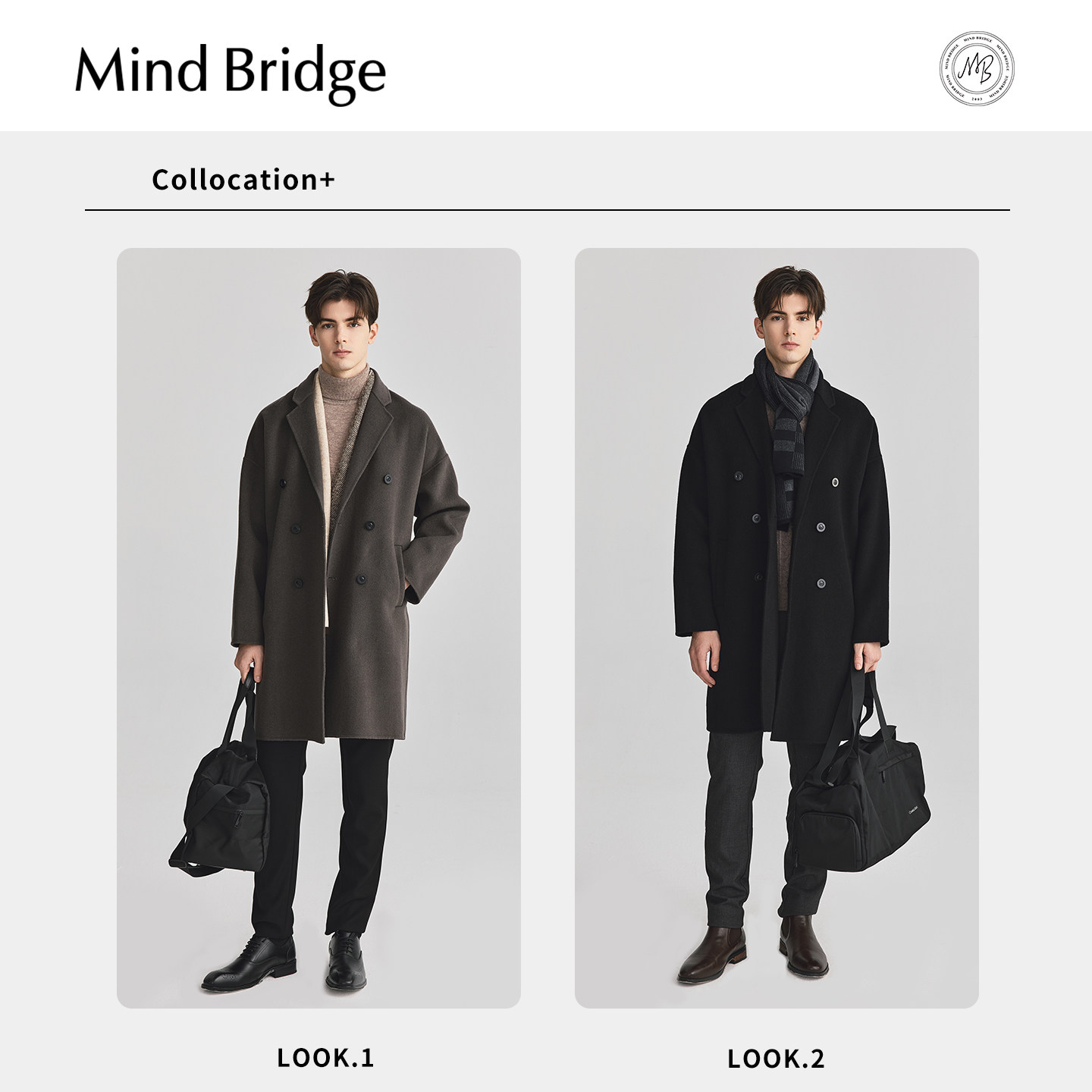 Mind Bridge冬季翻领夹克男士双排扣大衣2025年中长款毛呢外套