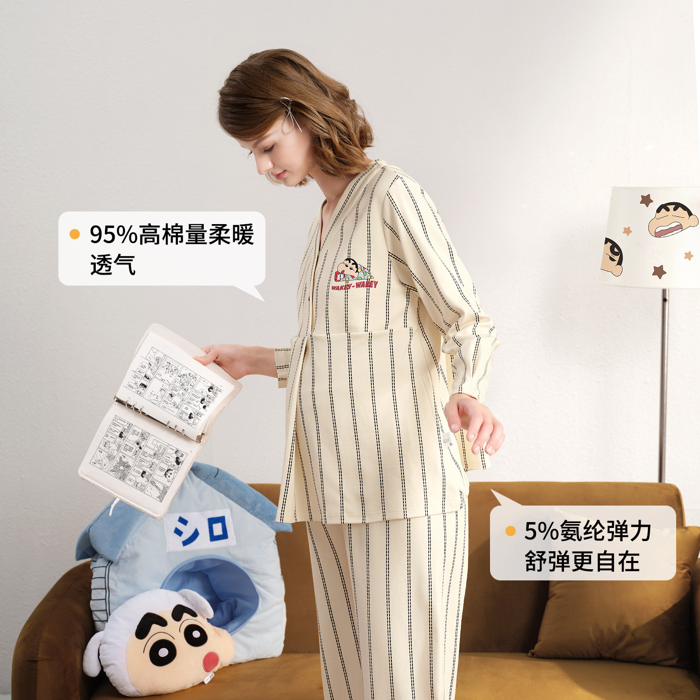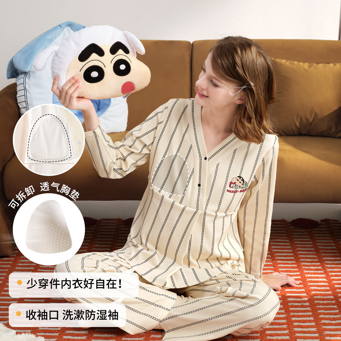 雅特茂&蜡笔小新联名月子服秋冬产后孕妇产妇哺乳睡衣孕期家居服