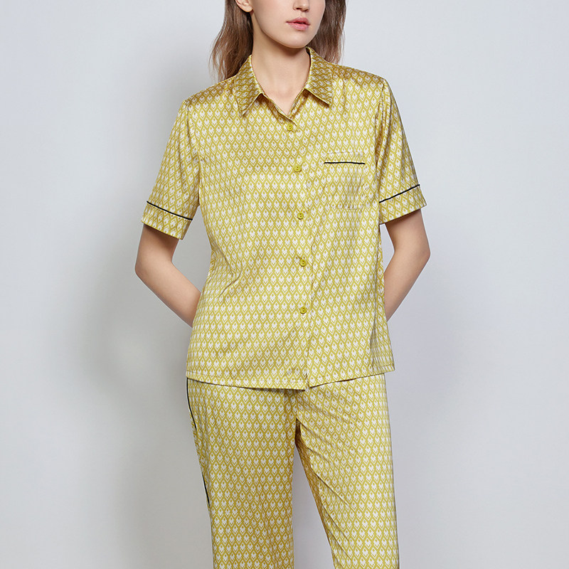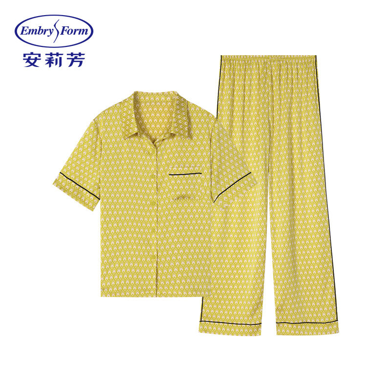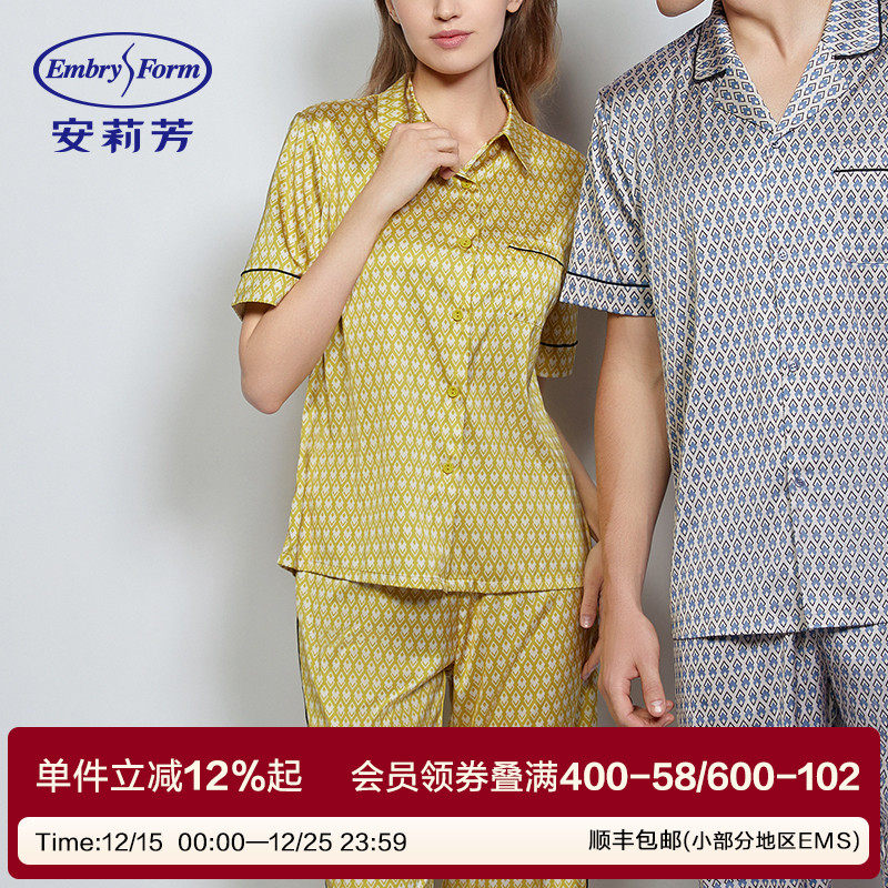 安莉芳专柜薄款雪纺印花睡衣套装情侣女款短袖长裤家居服EL00549