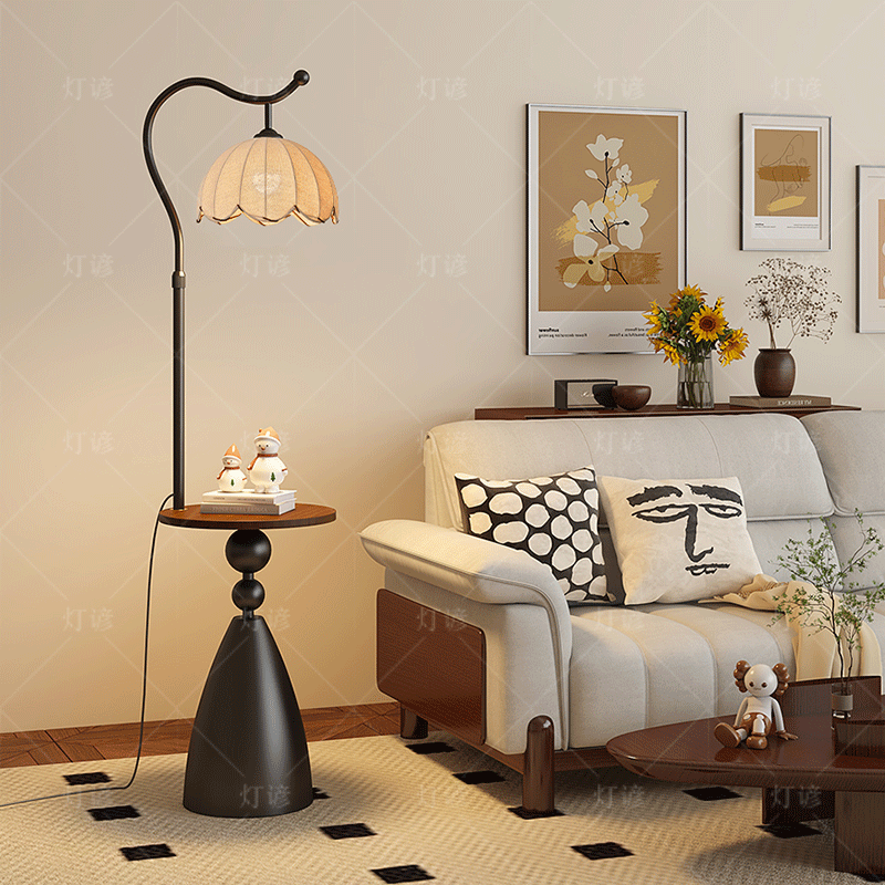 美式复古茶几落地灯置物架一体台灯中古客厅氛围灯卧室床头立式灯
