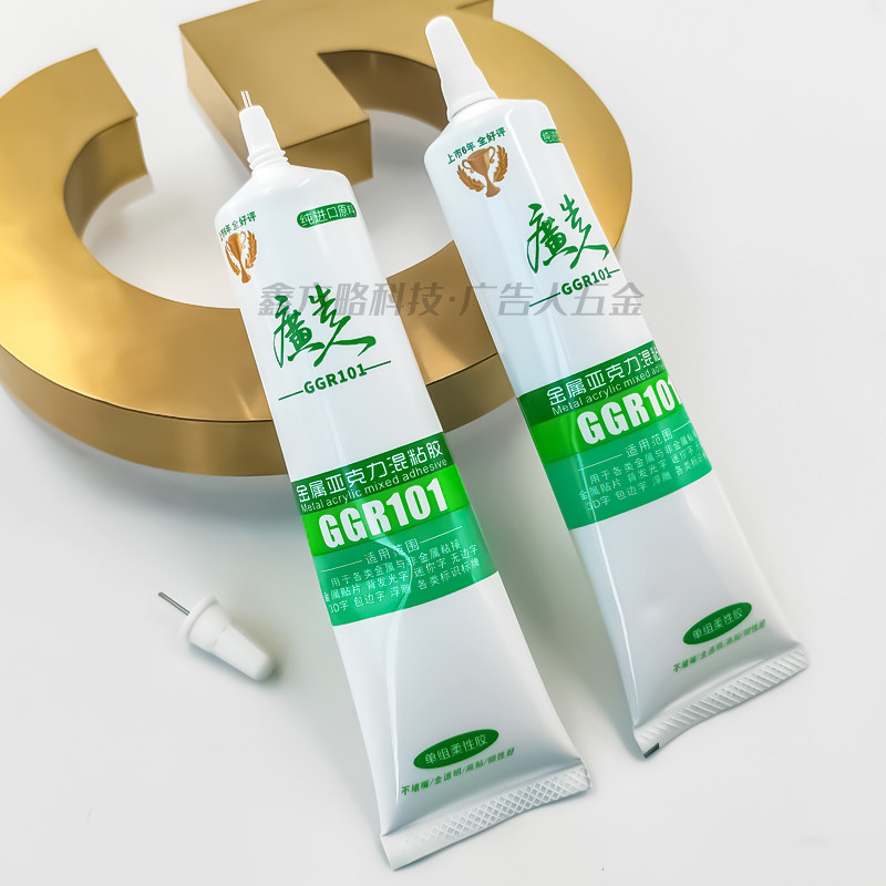 101金属胶不锈钢亚克胶小嘴水晶胶背发光字粘接剂金属亚克力混粘