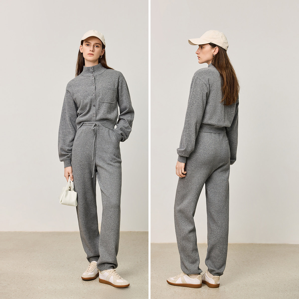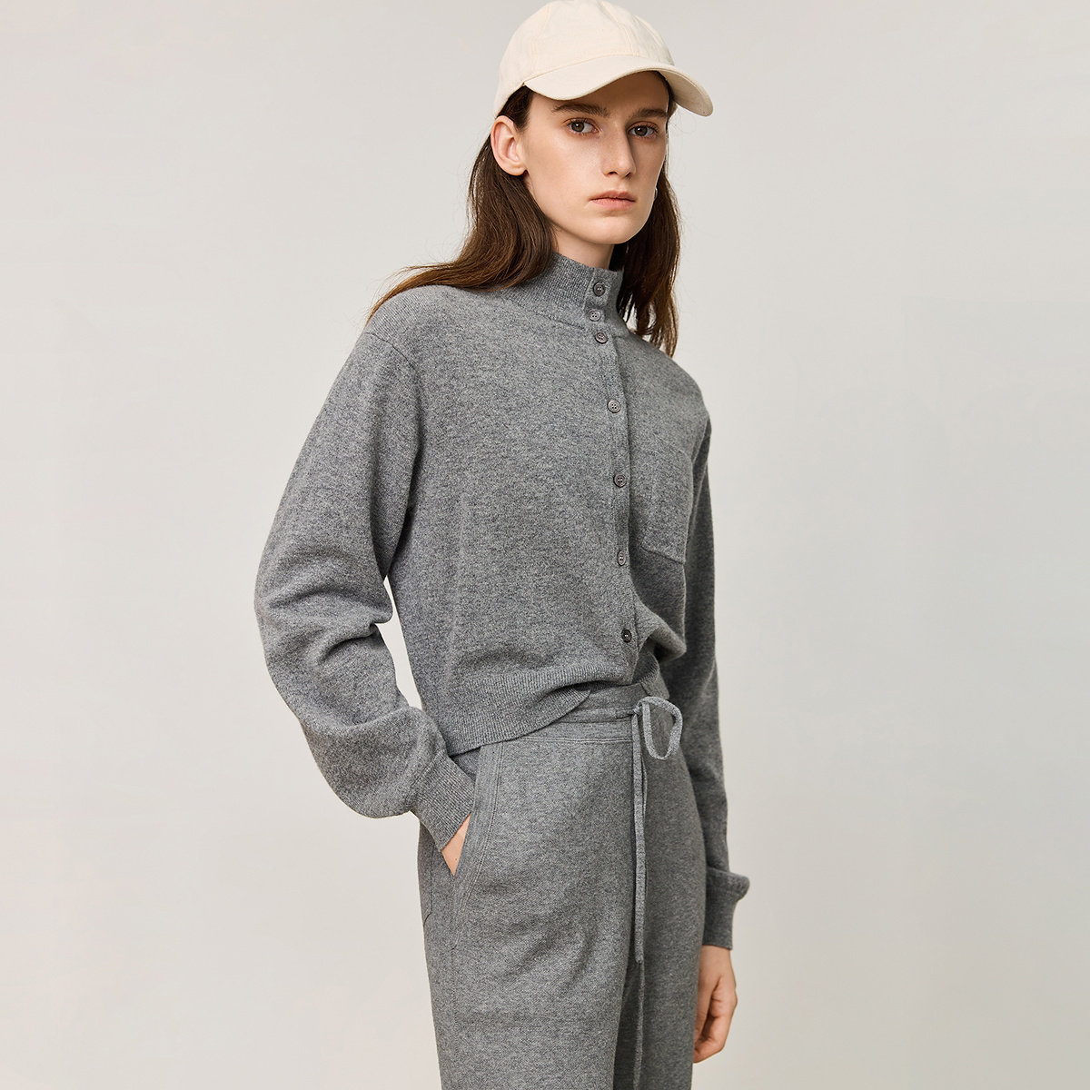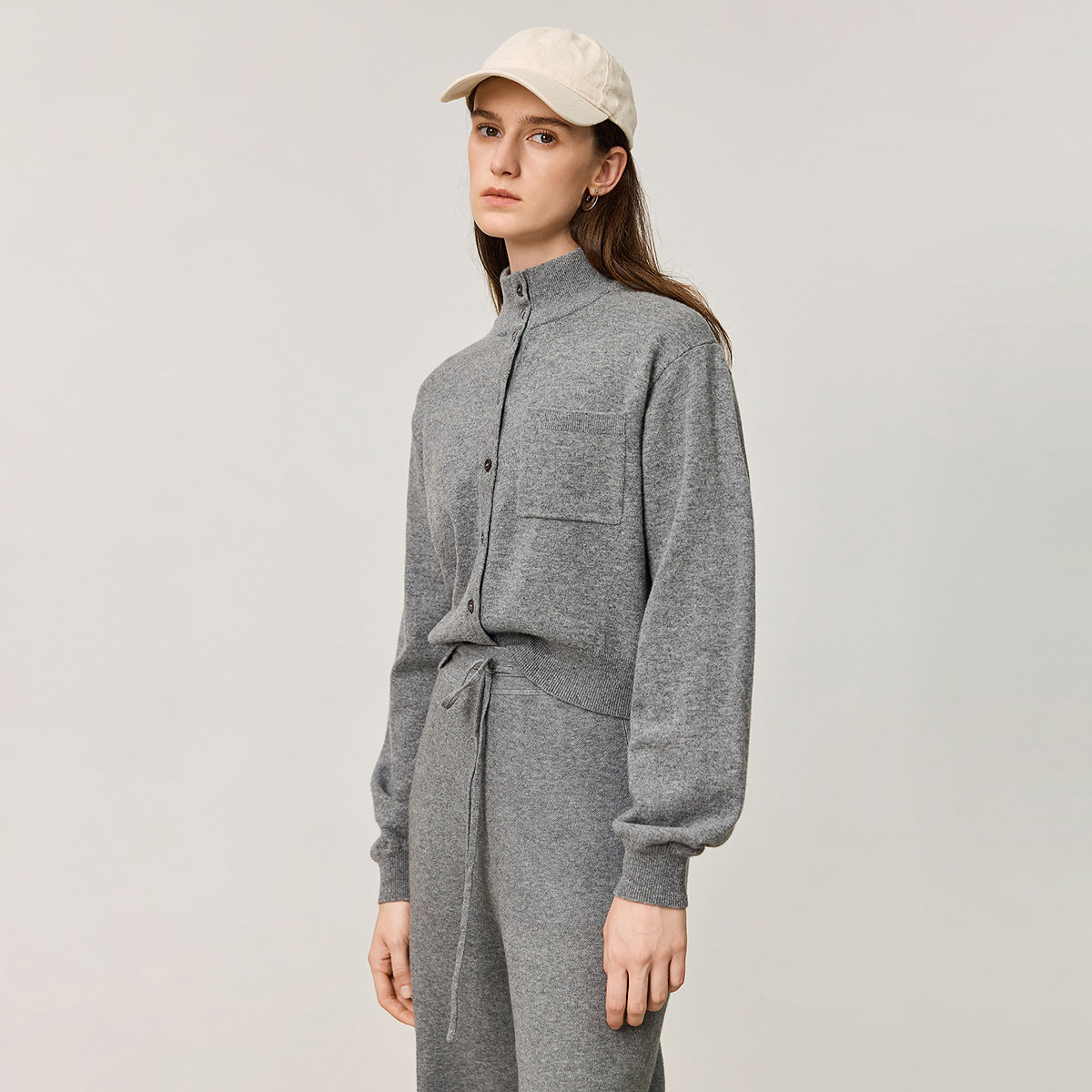 【商场同款】LILY冬新款女装绵羊毛休闲运动风立领开衫外套女