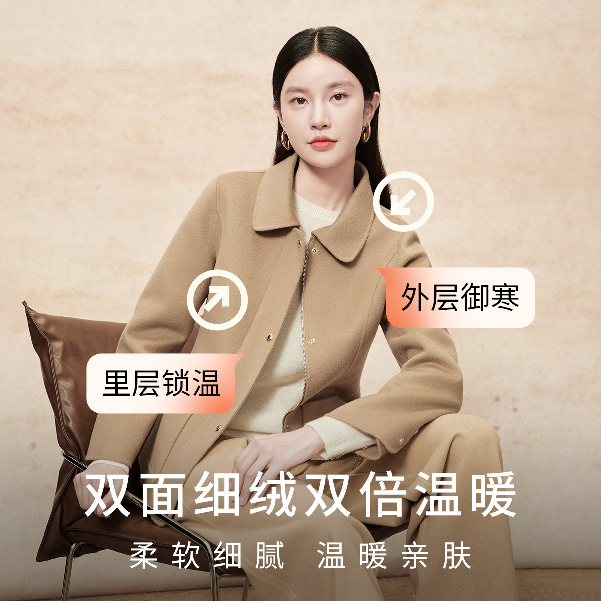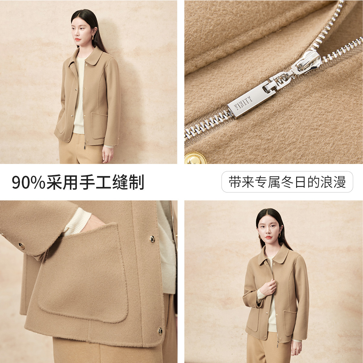 FINITY菲妮迪短外套25冬季新款简约翻领显瘦双面呢复古羊绒大衣女
