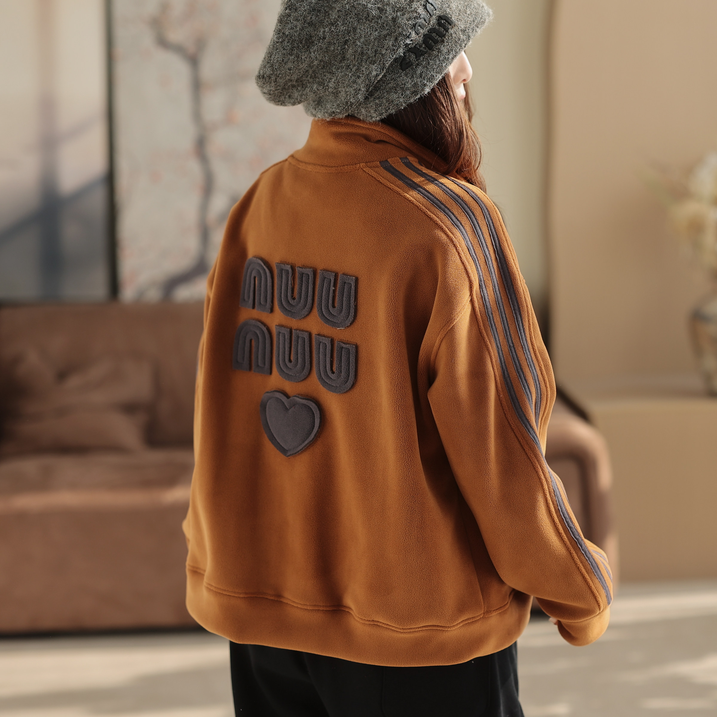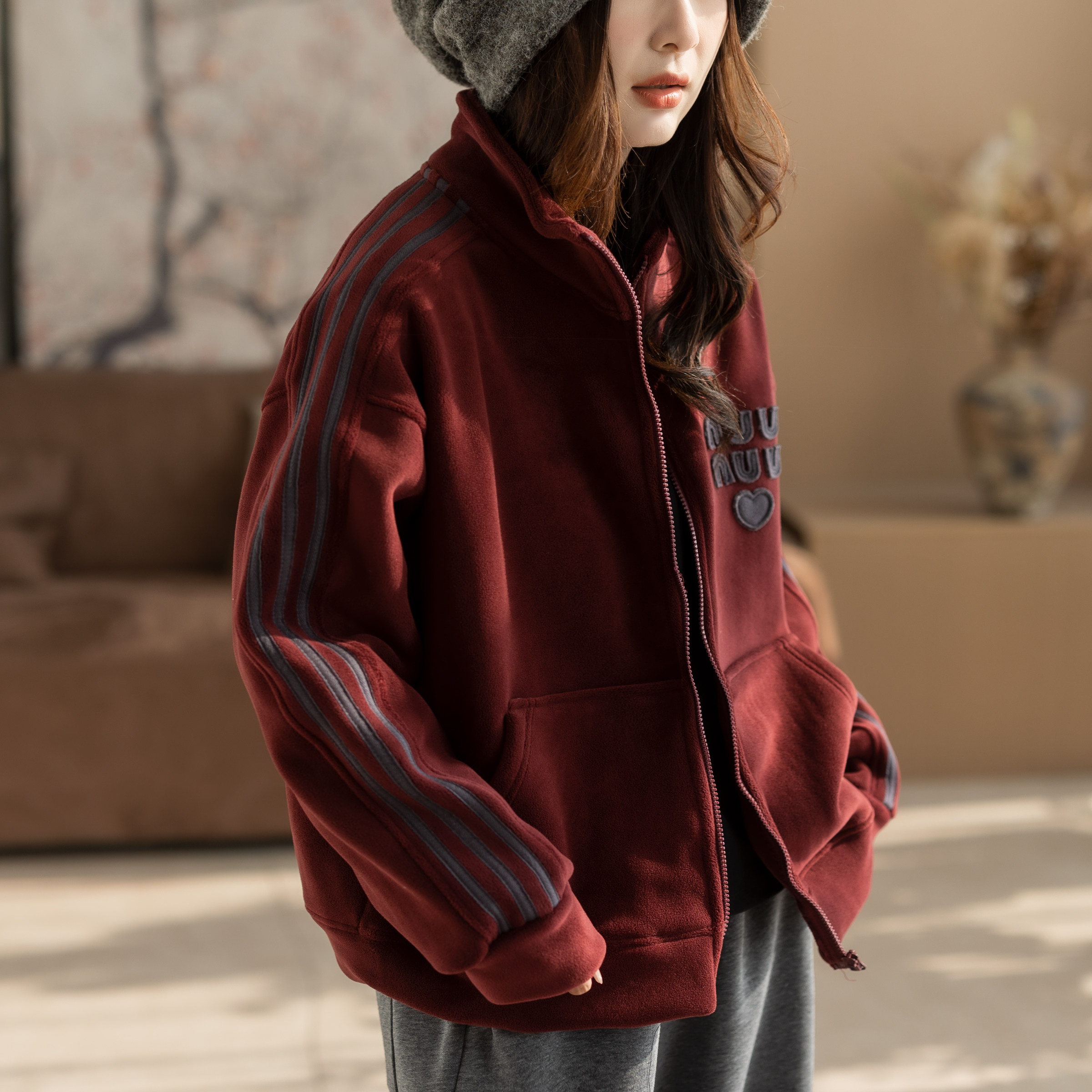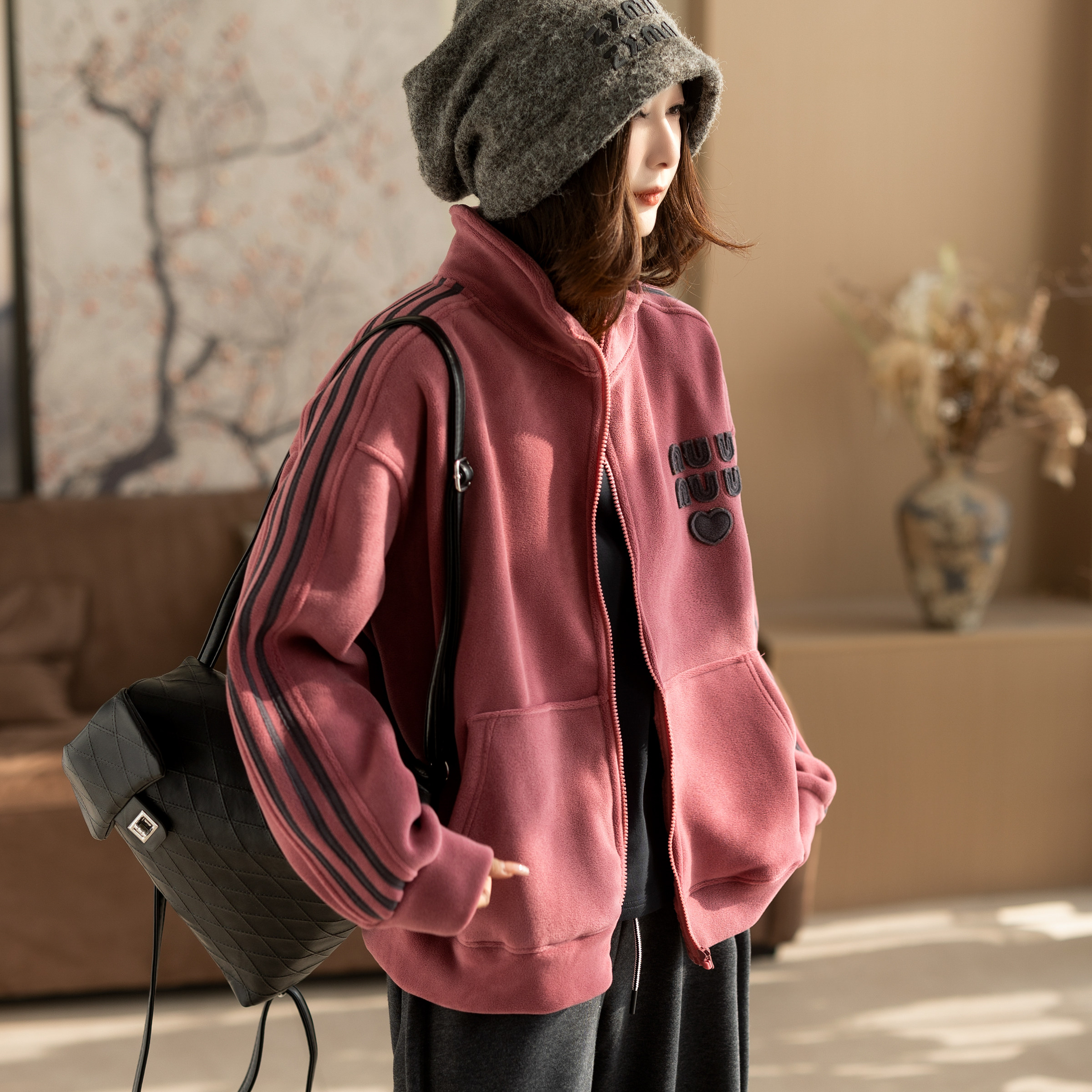 女士加厚外套摇粒绒上衣加绒妈妈中老年双面抓绒春秋冬季新款卫衣