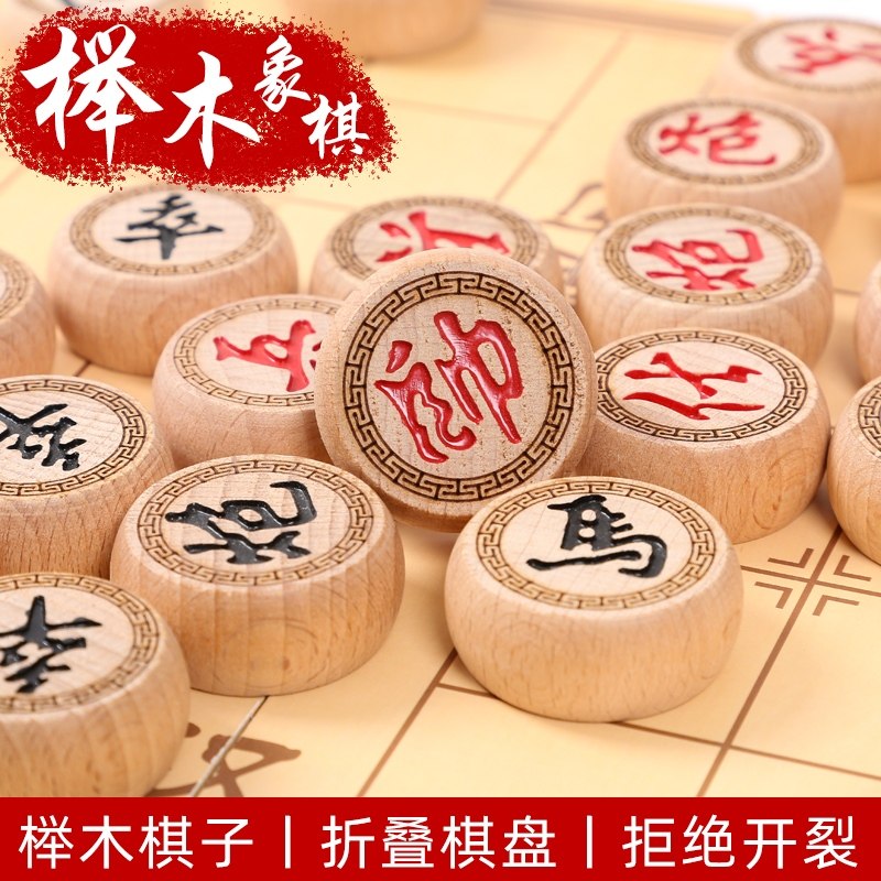 儿童象棋带棋盘实木中国象棋小学生大号棋子全套像棋牌橡棋折叠式