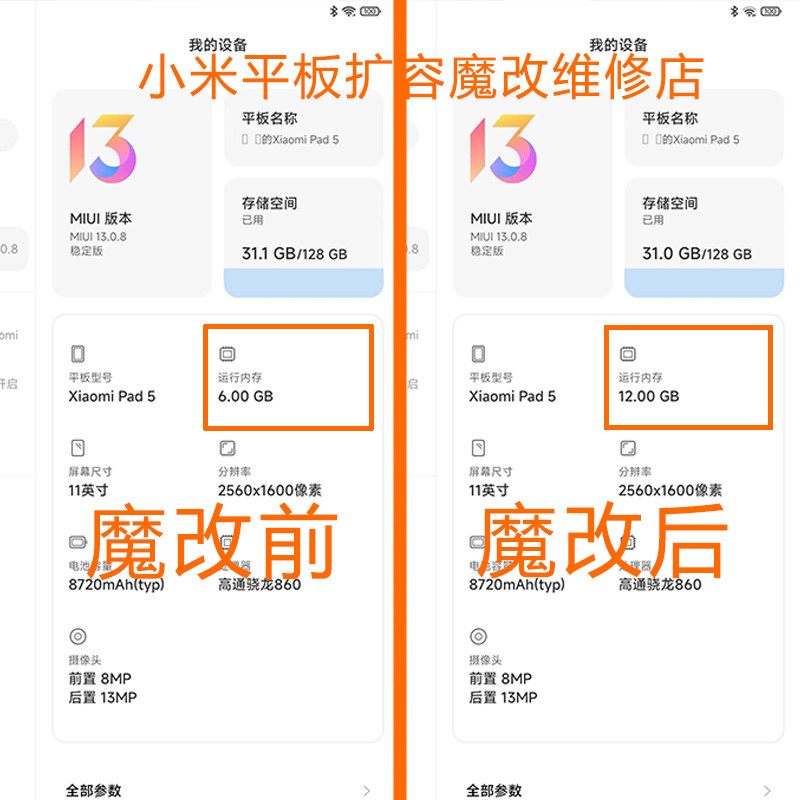 小米平板5 5pro扩容12G 16G魔改内存 升级运行 内存改装 维修故障