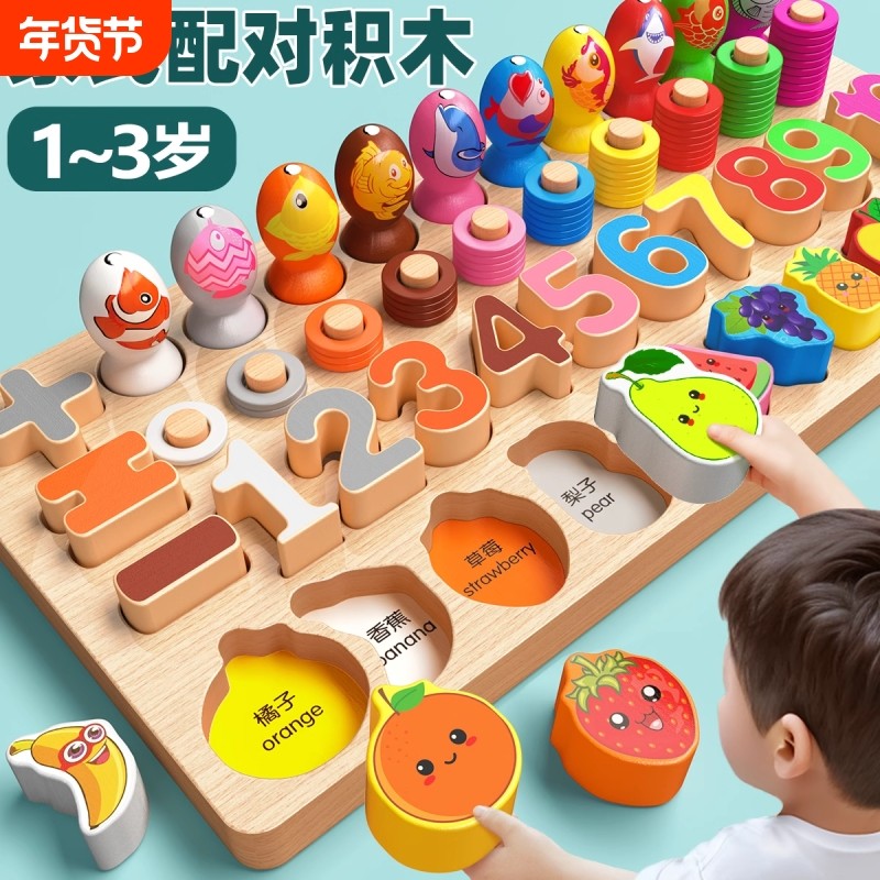 数字拼图积木幼儿童早教启蒙益智力开发2-3到6岁男孩女孩钓鱼玩具