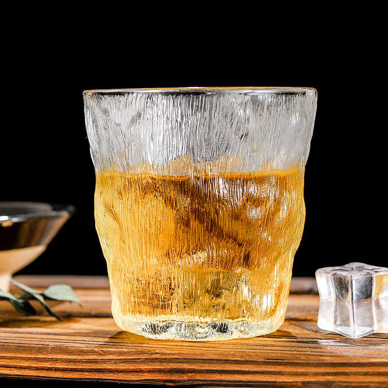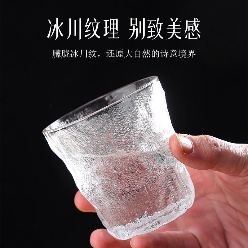 初雪玻璃杯子ins高颜值日式锤纹喝水杯家用套装竖茶杯品茗杯酒杯