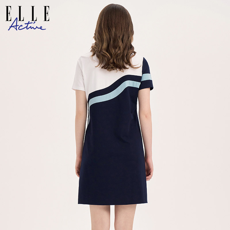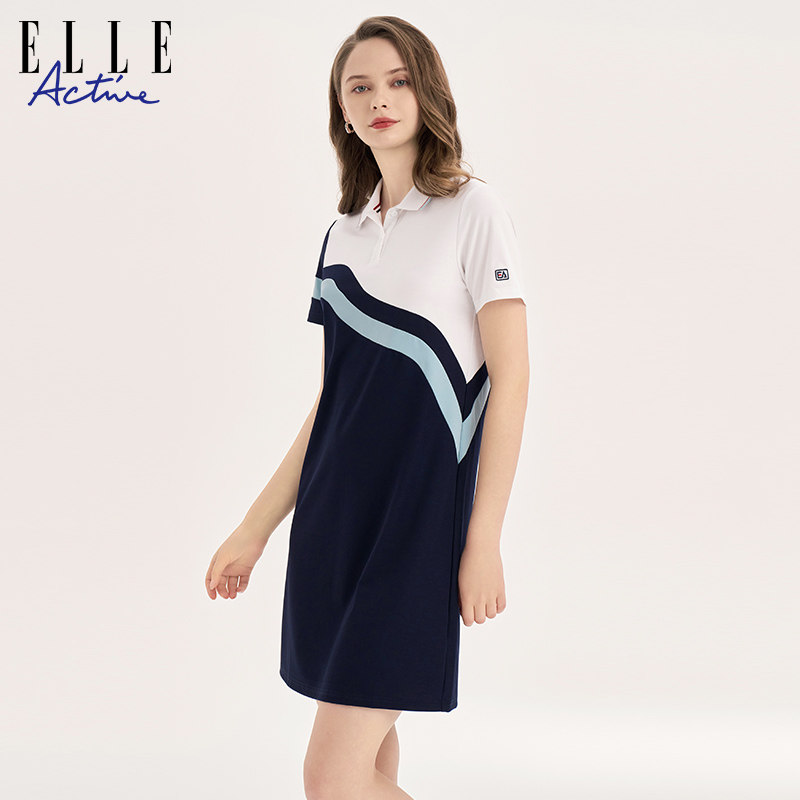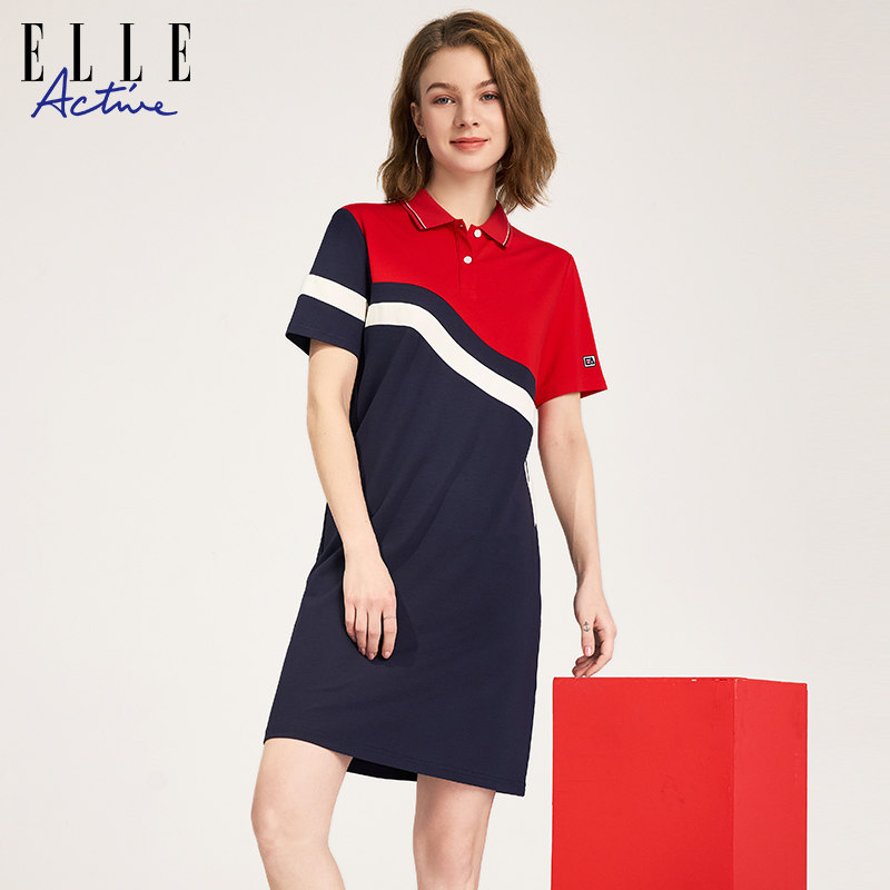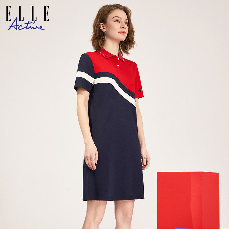 ELLE Active运动别致polo连衣裙女夏2025新款显瘦撞色休闲a字裙子