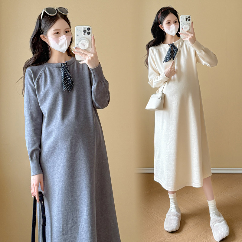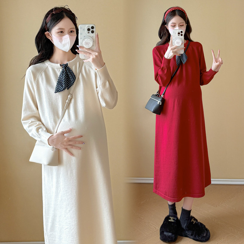 婧麒孕妇装秋季新款连衣裙2025新款高级感气质显瘦长款针织裙子女