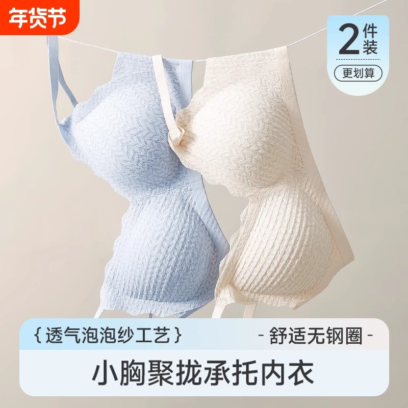 内衣女小胸聚拢上托防下垂性感无痕蕾丝美背文胸无钢圈乳胶胸罩夏