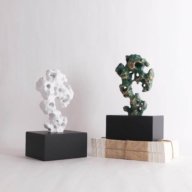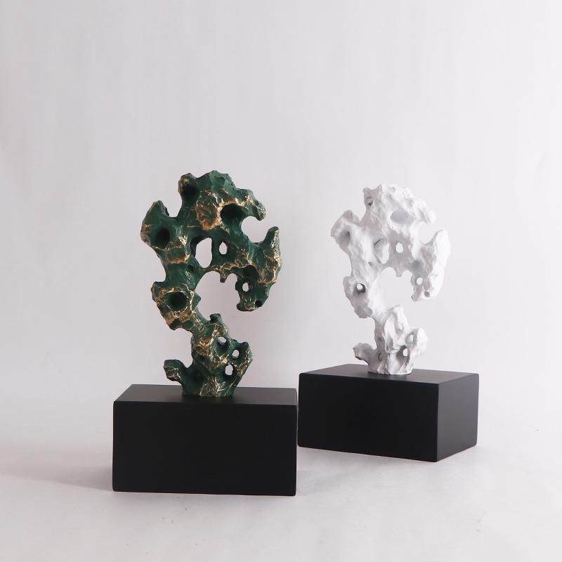 新中式禅意树脂太湖石摆件展厅售楼处客厅隔断书房书柜软装饰品